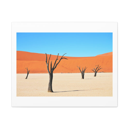 Dead Tree on Desert Illustration, Art Print on Satin Canvas