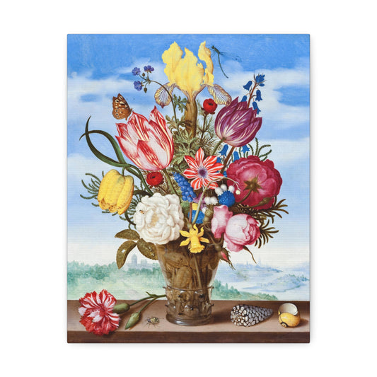 Bouquet of Flowers on a Ledge (1619) by Ambrosius Bosschaert, Art Print from the Original on Canvas