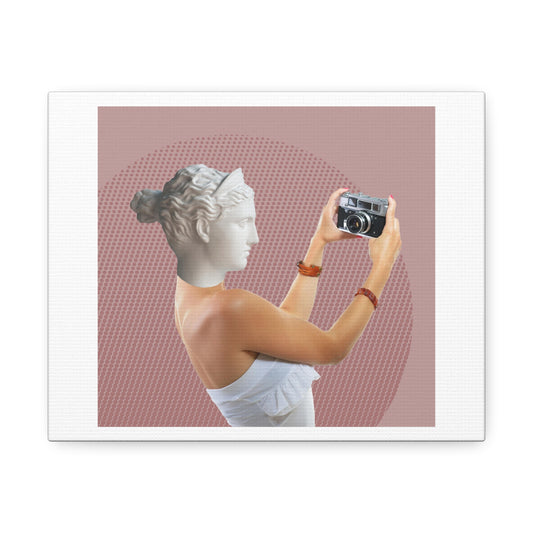 Human Statue Selfie, Graphic Art Print on Satin Canvas
