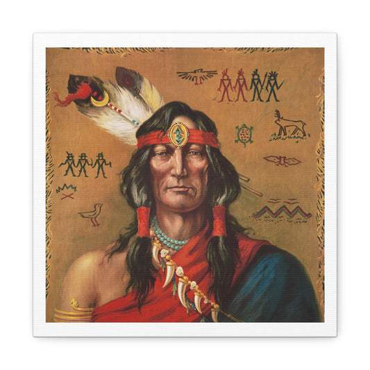 Indian Chief Portrait Illustration, Art Print from the Original on Canvas