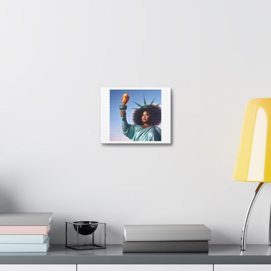 Chicken at the Statue of Liberty, Art Print 'Designed by AI' on Canvas