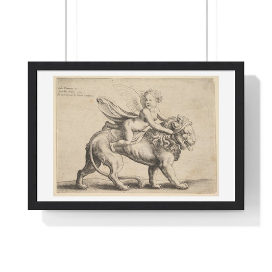 Cupid on a Lion (1652) by Giulio Romano, from the Original, Framed Art Print
