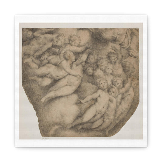 God the Father Borne by Angels in Clouds, after the Cupola at Cortemaggiore, by Giovanni Antonio Da Pordenone, Art Print from the Original on Canvas