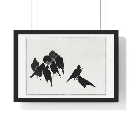 Japanese Crows, Illustration from 'Seitei Kacho Gafu' (1890–1891) by Wantanabe Seitei, from the Original, Framed Art Print