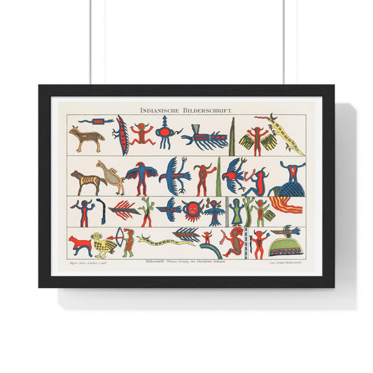 Objibaw Characters, Indian Native Art, Published by the Institute Bibliographic of Leipzig (1897) fom the Original, Framed Art Print