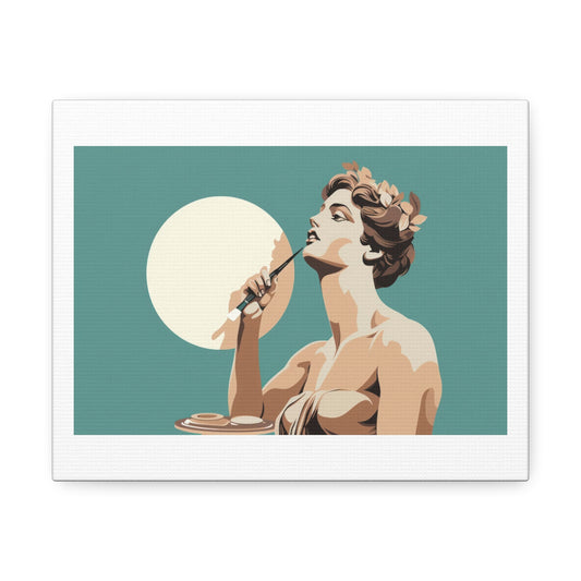 Greek Goddess Statue Doing Her Makeup, Art Print 'Designed by AI' on Canvas