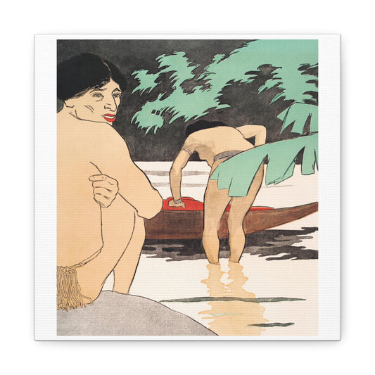 Men by the River, Remixed from Artworks by Edward Penfield, Print from the Original on Canvas