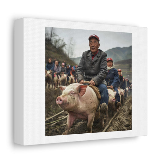 Pig Racing in China 'Designed by AI' Art Print on Canvas