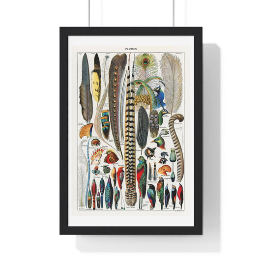 Feathers 'Plumes' (1900) by Adolphe Millot, a Collection of Different Plume Types, from the Original, Framed Art Print