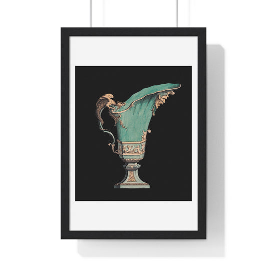 Lithograph of an Antique Green Vase (1866) a Beautiful Vase with Fantastical Decoration, from the Original, Framed Print