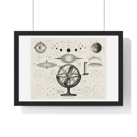 Bolder-Atlas by Brockhaus (1849) an Antique Drawing of Vintage Astrological Spheres and Charts, Framed Print from the Original