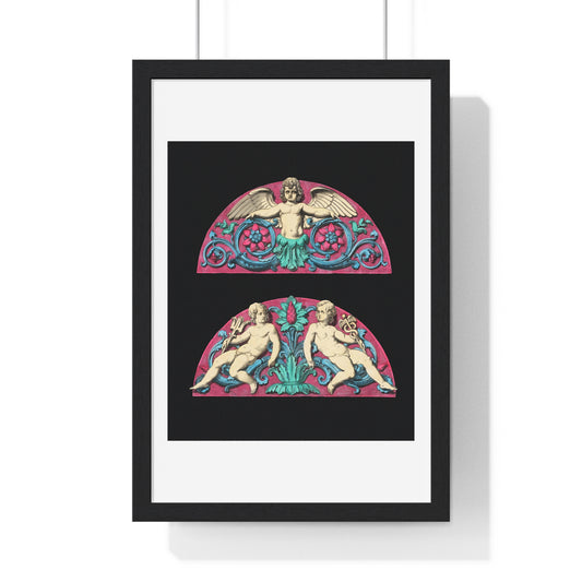 Lithograph of an Architecture Detail (1888) Depicting Cherubs in the Renaissance Style, from the Original, Framed Print
