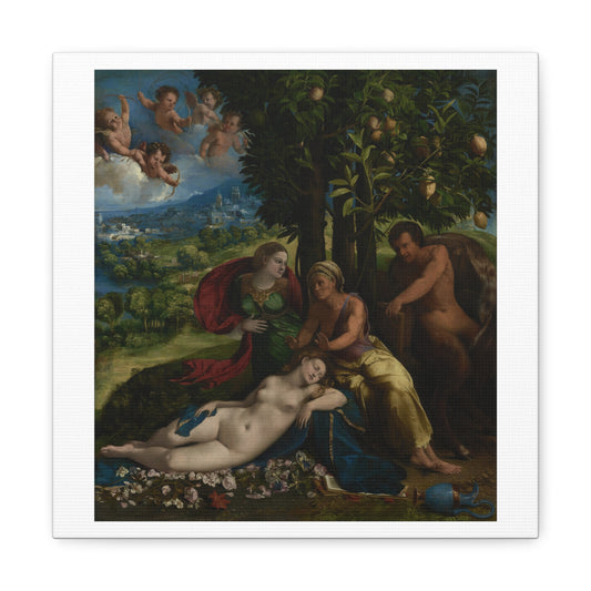Mythological Scene (1524) by Dosso Dossi (Giovanni di Niccolò de Lutero) from the Original, Print on Canvas
