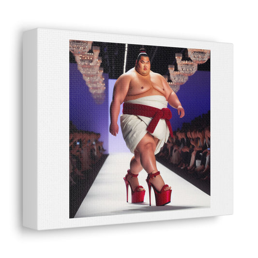 Japanese Sumo Wrestler on the Fashion Catwalk 'Designed by AI' Art Print on Satin Canvas