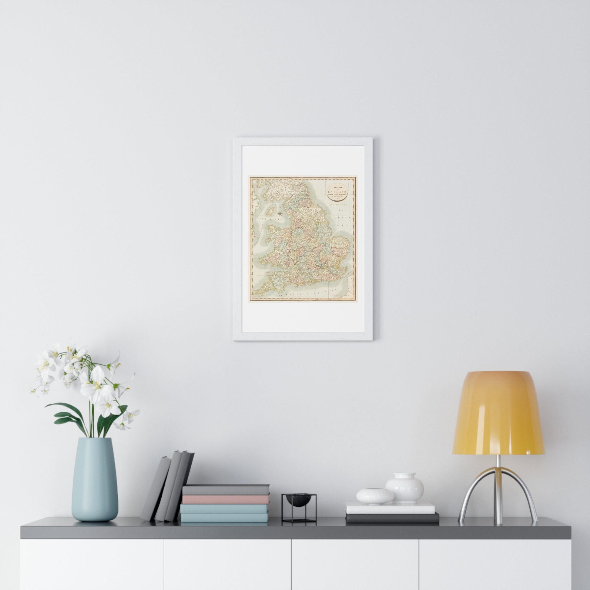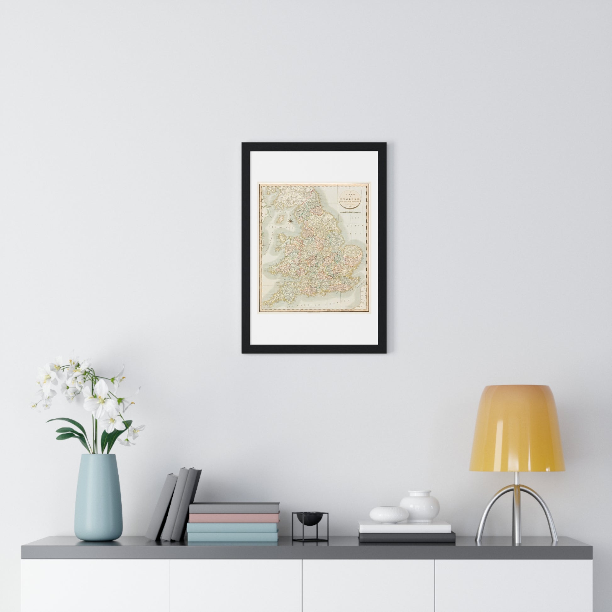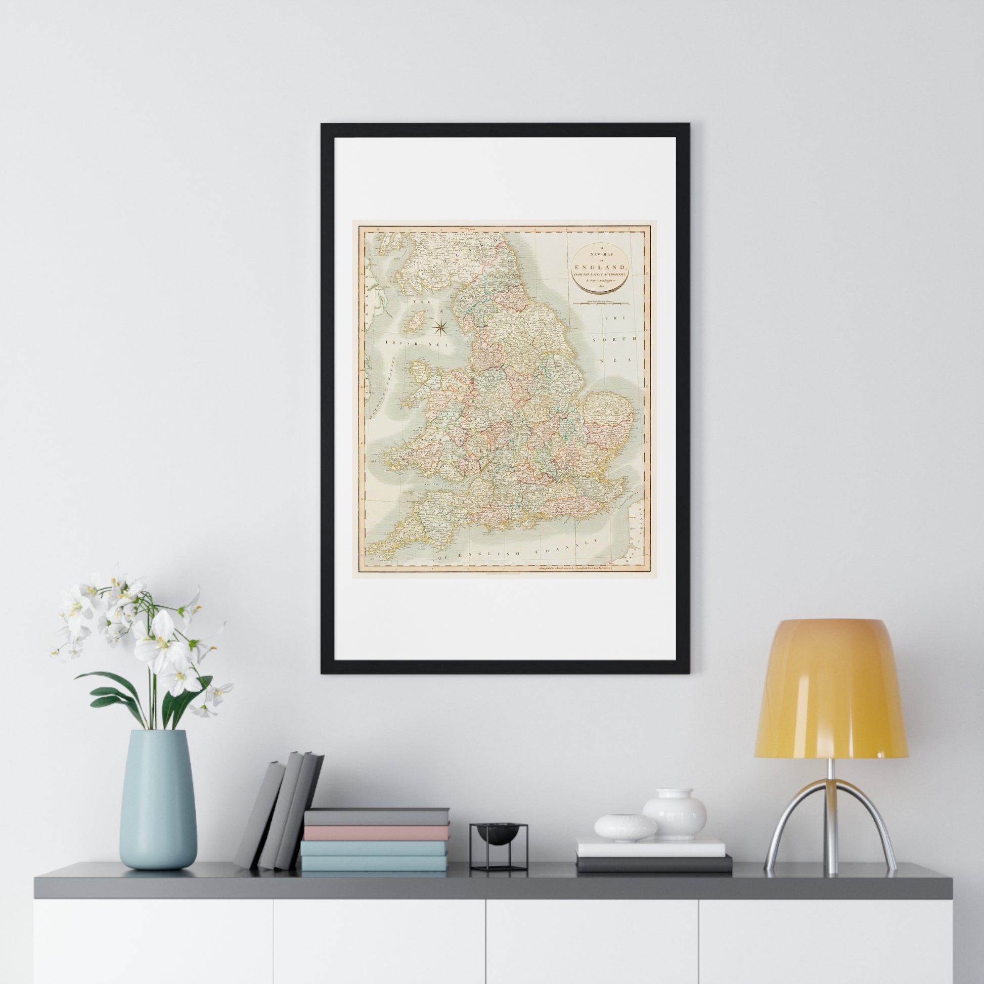 Antique Map: A New Map of England (1811) by John Cary from the Original, Framed Art Print