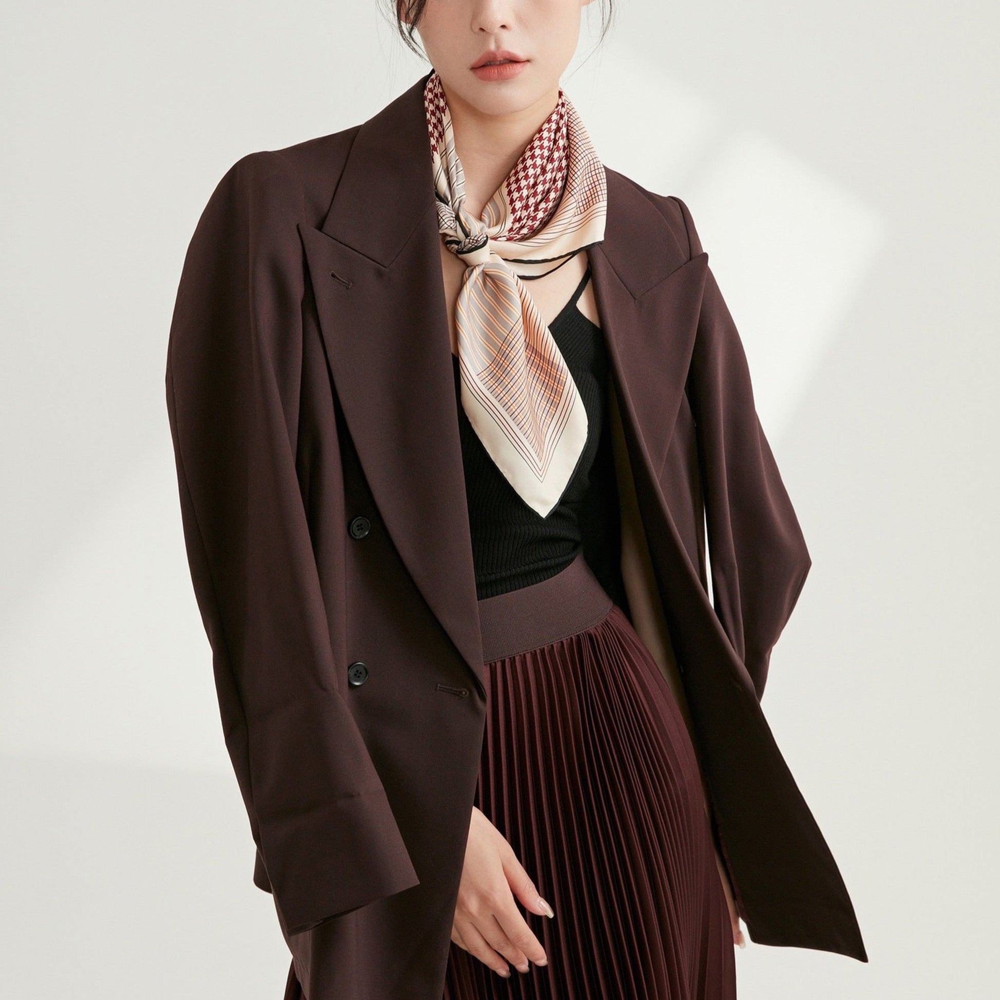 Elevate your style with our Classic Houndstooth silk square scarf, featuring a timeless pattern and hand-rolled hems. Crafted from luxurious silk twill, known for its softness, elegance, breathability, and durability. The deep red, black, and white hues add a touch of sophistication, while the classic houndstooth pattern ensures versatility for any outfit or occasion. Perfect as a refined accessory or a timeless silk anniversary gift for both women and men.