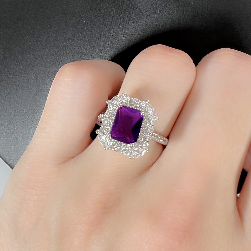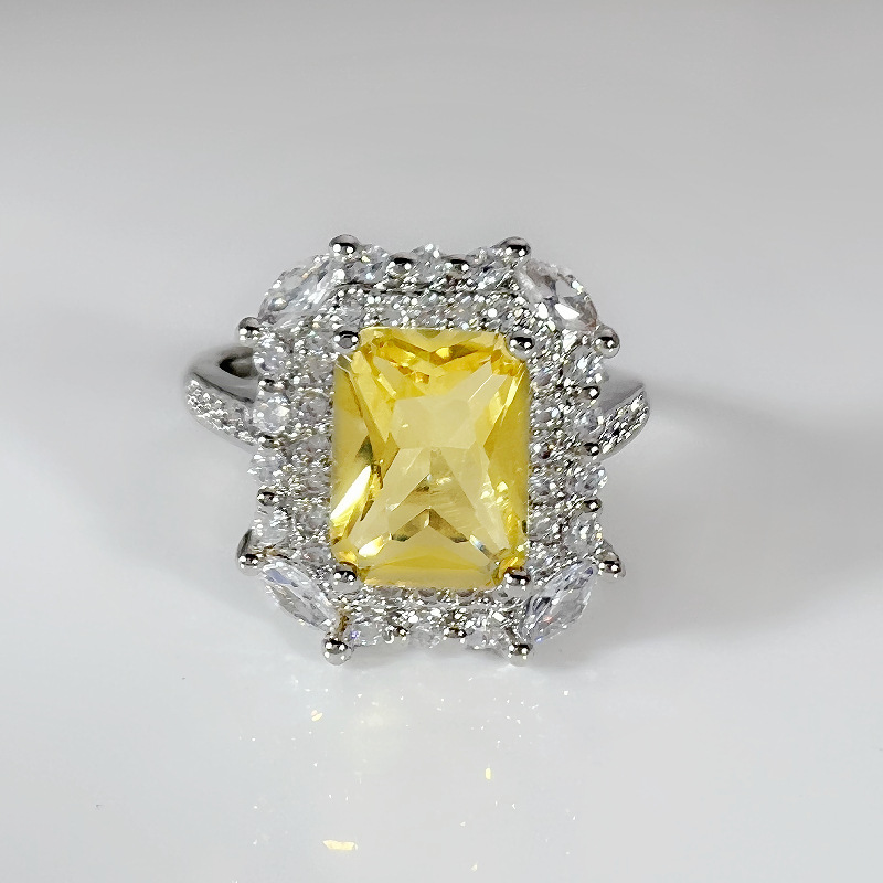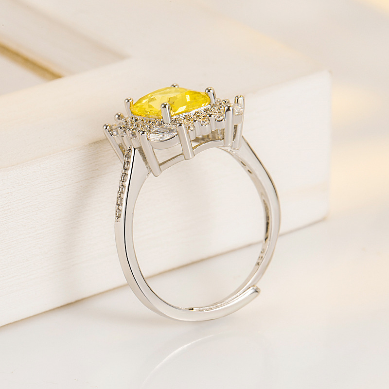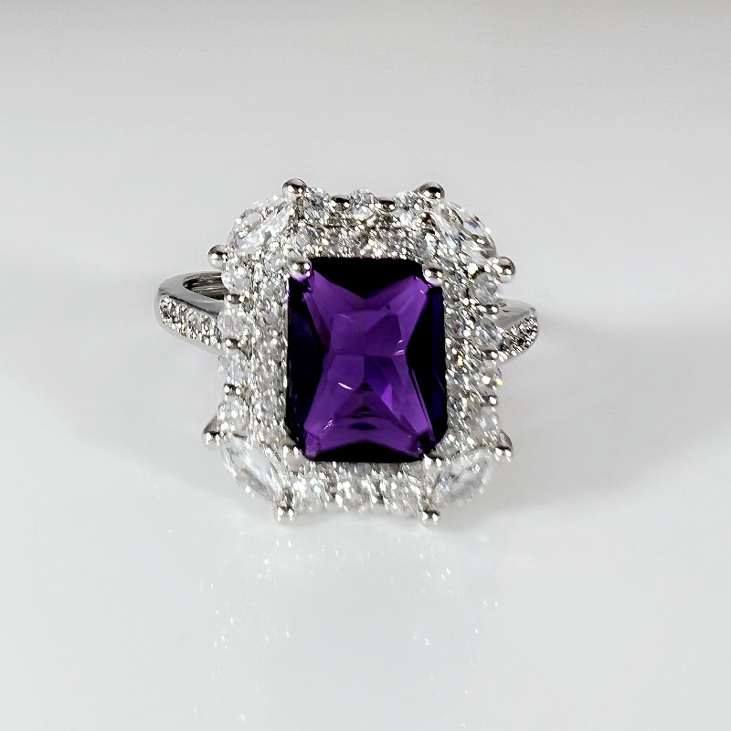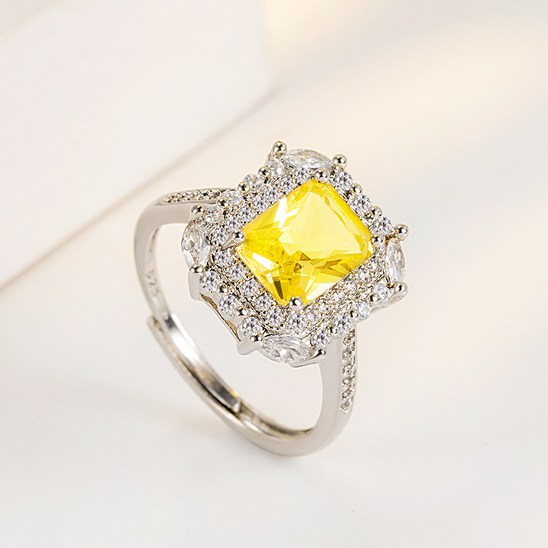 Crystal Square Design, Sparkling Yellow or Purple Citrine Adjustable Ring