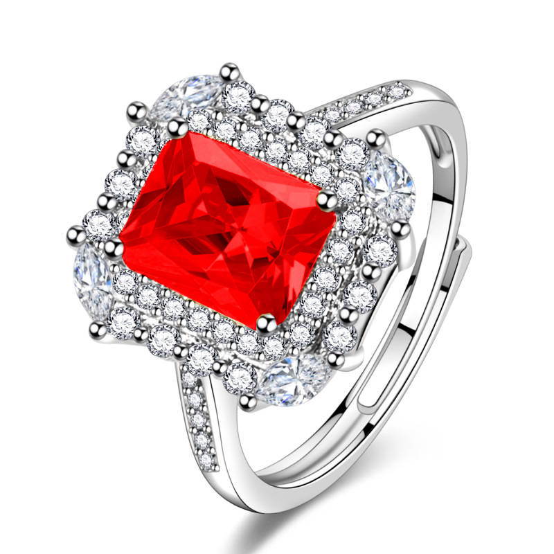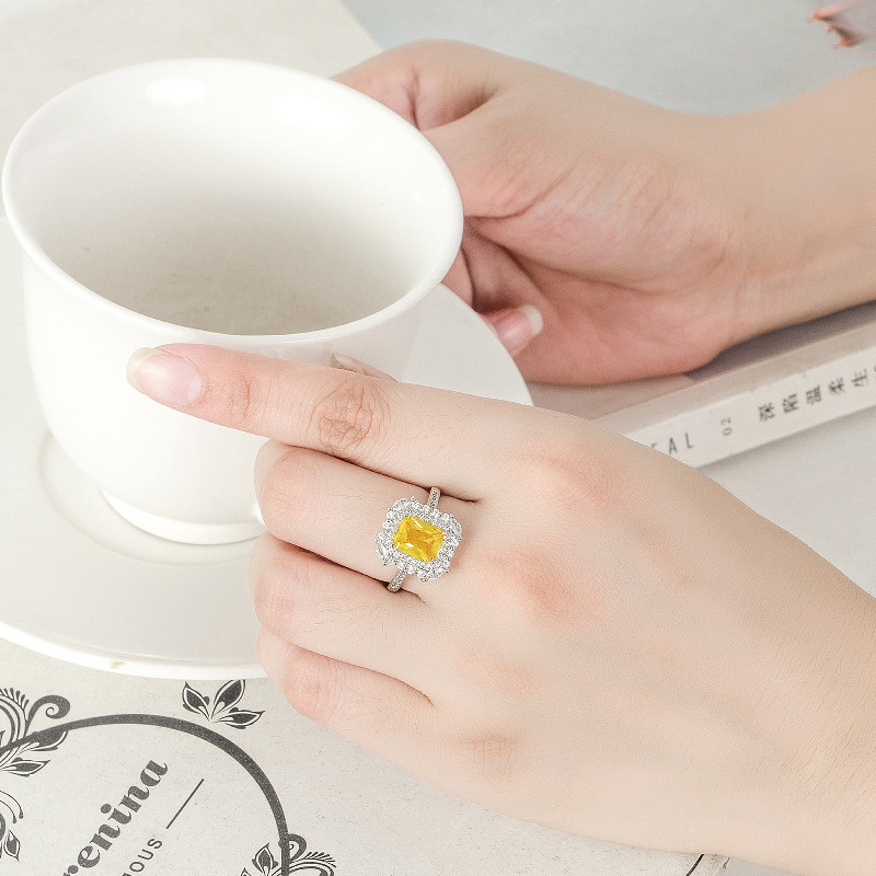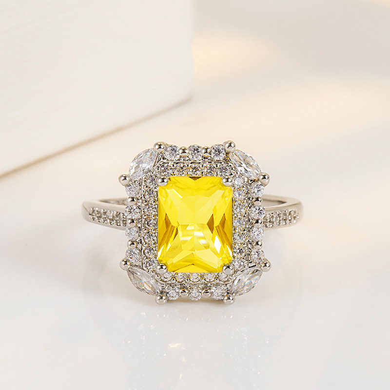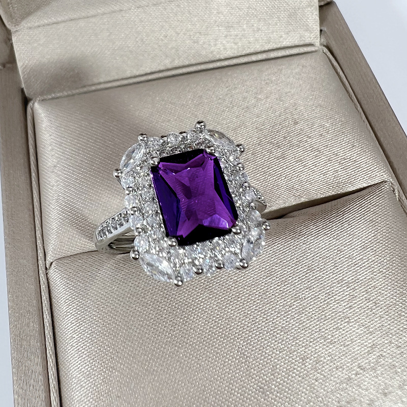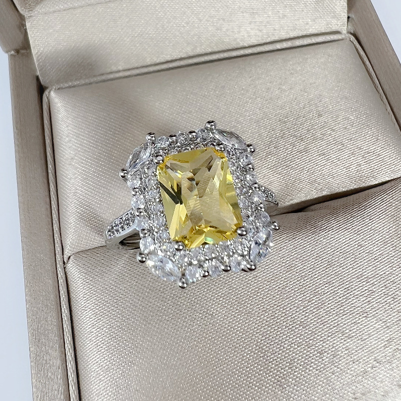 Crystal Square Design, Sparkling Yellow or Purple Citrine Adjustable Ring