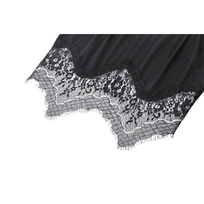The Dark in Love Eliza Gothic Black Camisole is the perfect addition to your wardrobe. Featuring delicate lace detailing and a ribbed fabric texture, this gothic-inspired crop top and shorts set offers a stylish and edgy look. The minimalist design on the back completes the ensemble.