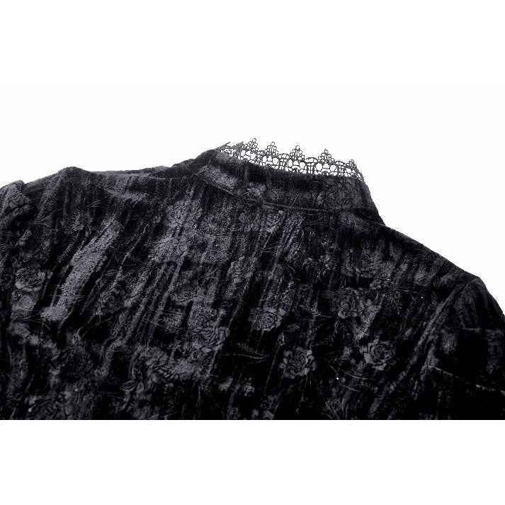 Dark in Love Fleur Gothic Rose-Embossed Velvet Long-Sleeve Top