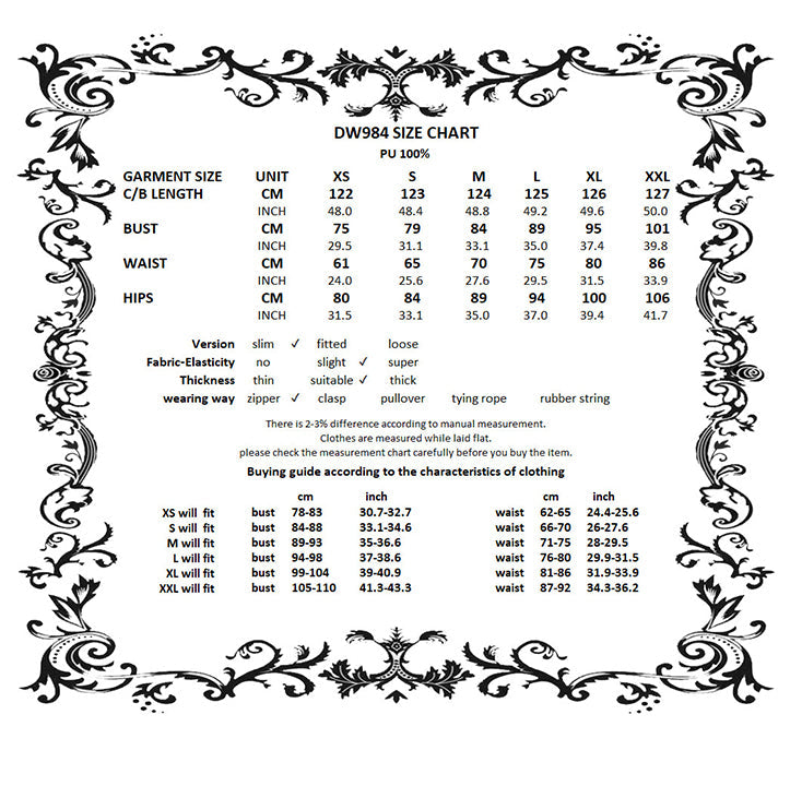 For the perfect fit please see Dark in Love’s size guide in the images.