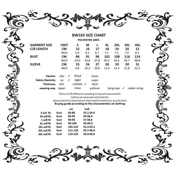 The front ties with slim black ribbons, allowing for an adjustable fit while showcasing your outfit beneath. Perfect for pairing with corsets, sleeveless dresses, or gowns, this bolero adds a touch of aristocratic charm to any alternative wardrobe.