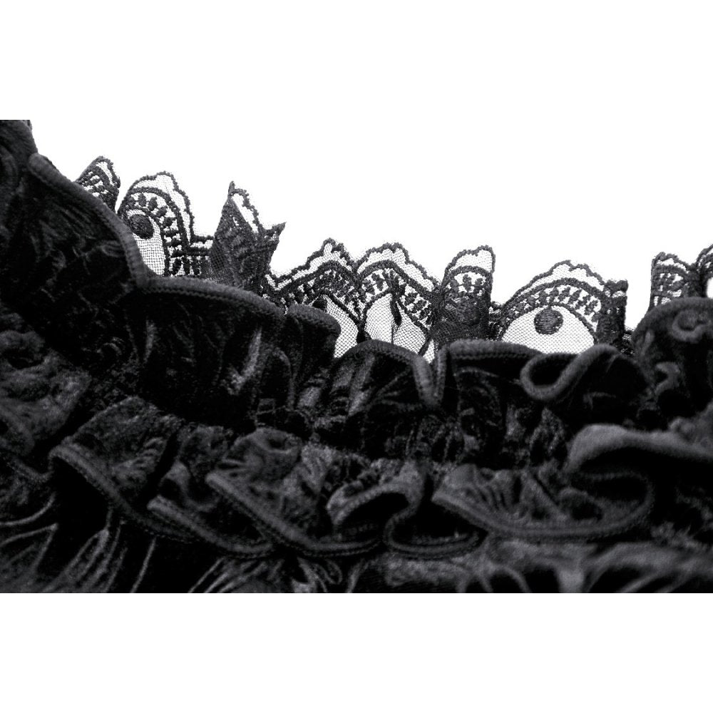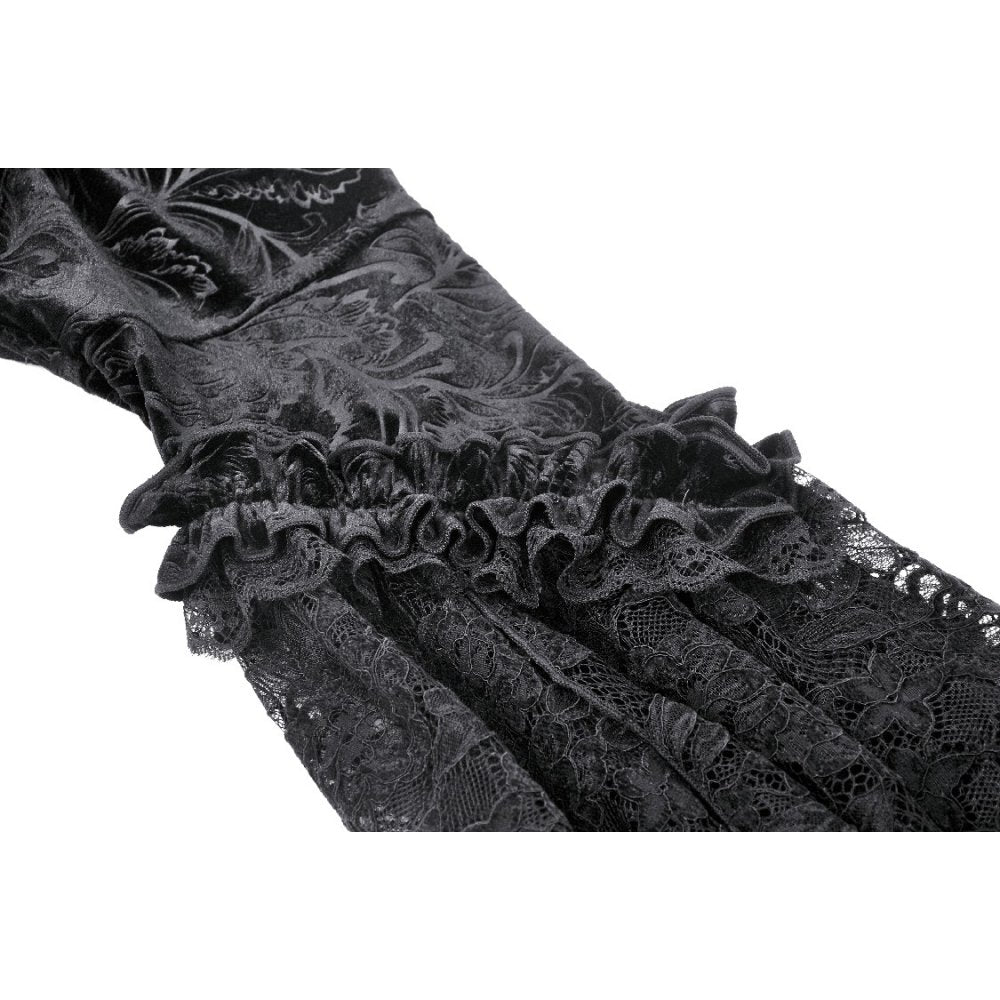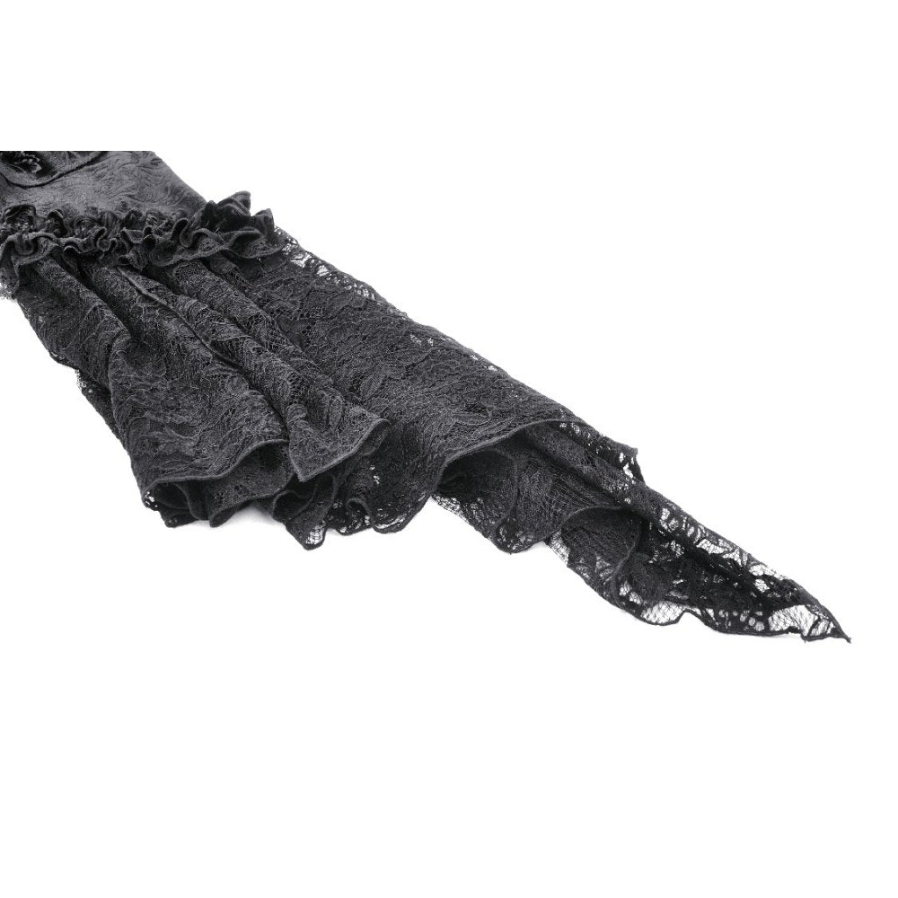 Unleash your dark side with the Dark In Love Raegan Bolero Jacket. This gothic-inspired piece features elegant lace and long bell sleeves, adding a touch of mystery and flair to any outfit.