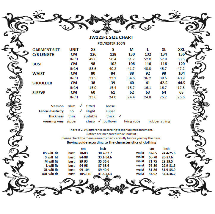 For the perfect fit, please see Dark in Love's size guide in the images.