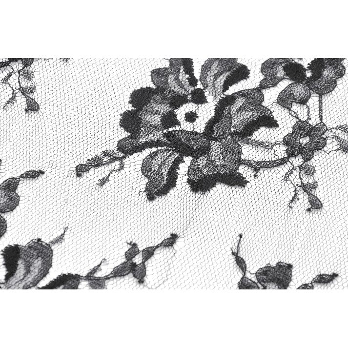 Embrace ethereal darkness with the Dark in Love Thalassa Floral Lace Draped Arm Sleeves. These sheer detachable sleeves are crafted from delicate embroidered floral lace, featuring scalloped edges, ruched upper bands, and layered trims finished with elegant dangling ribbons.