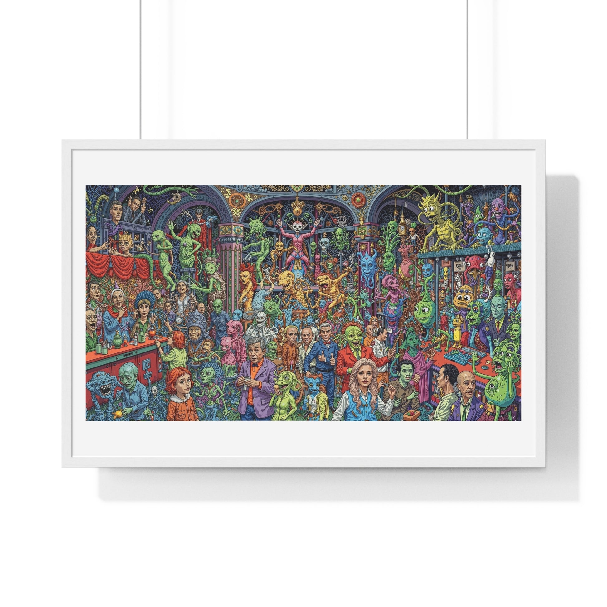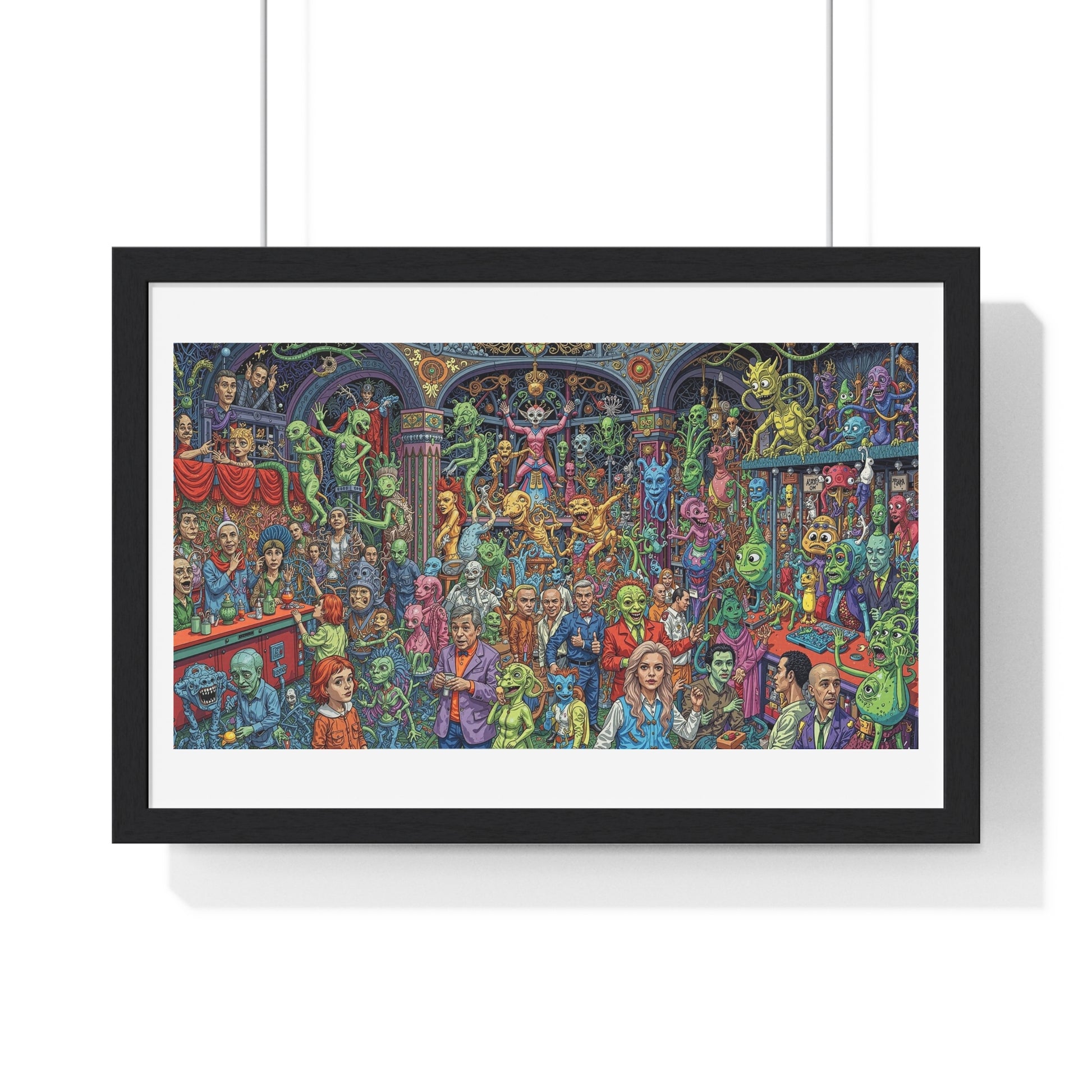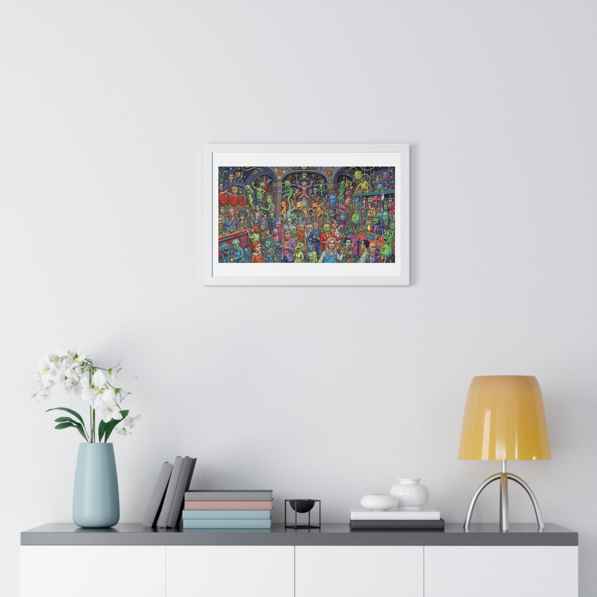 Demons and NPCs Diorama, Cartoon Art 'Designed by AI' Framed Art Print