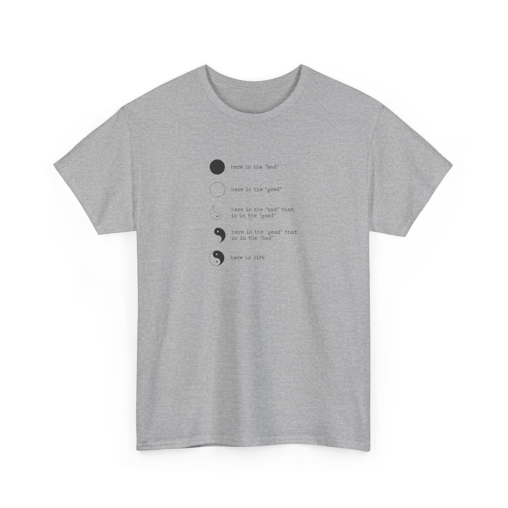 The unisex heavy cotton tee is the basic staple of any wardrobe. It is the foundation upon which casual fashion grows. The specially spun fibers provide a smooth surface for premium printing vividity and sharpness. No side seams mean there are no itchy interruptions under the arms. The shoulders have tape for improved durability. .: 100% cotton (fiber content may vary for different colors) .: Medium fabric (5.3 oz/yd² (180 g/m²)) .: Classic fit .: Tear-away label .: Runs true to size