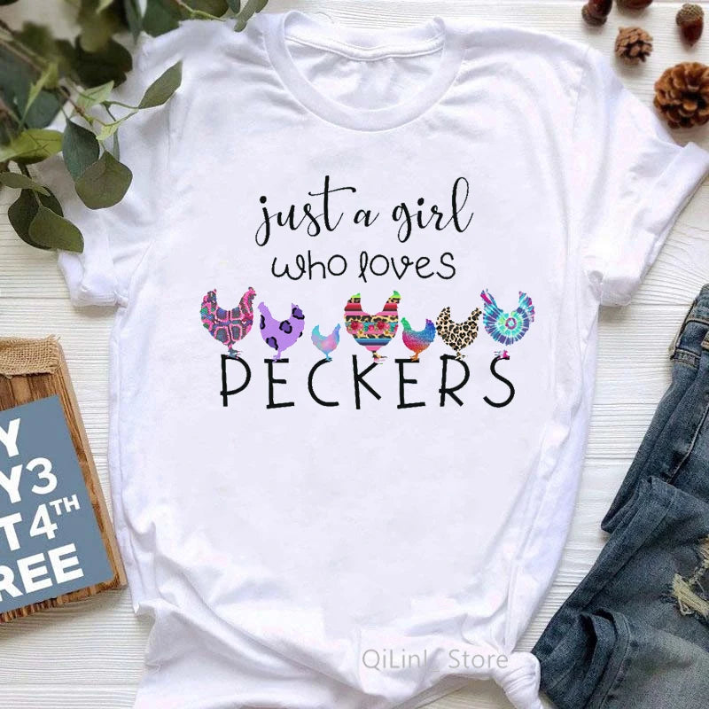 Funny Chicken Graphic 'Love' and 'Peace' T-Shirt, Multi Designs