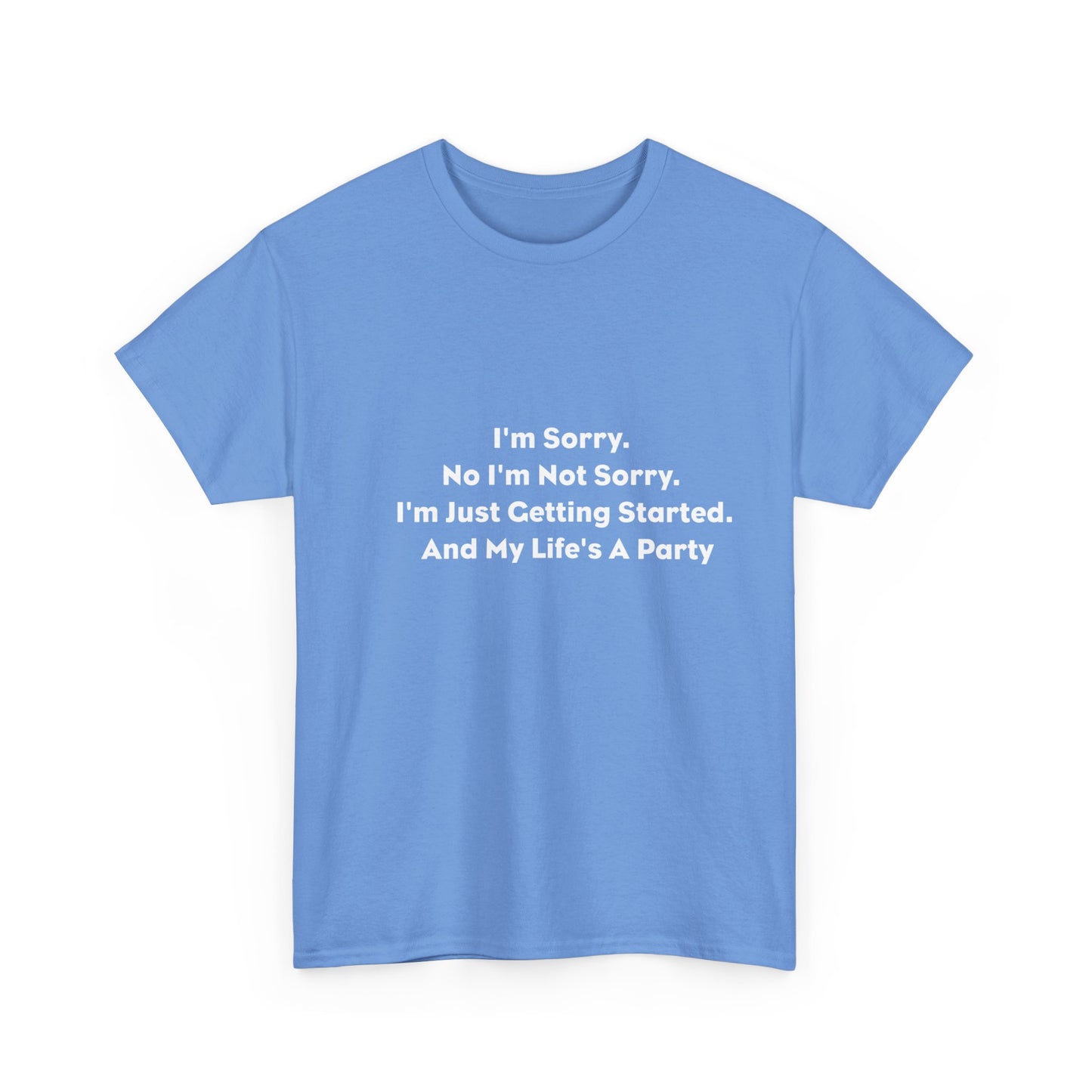 I'm Sorry, No I'm Not Sorry, I'm Just Getting Started and My Life's a Party T-Shirt