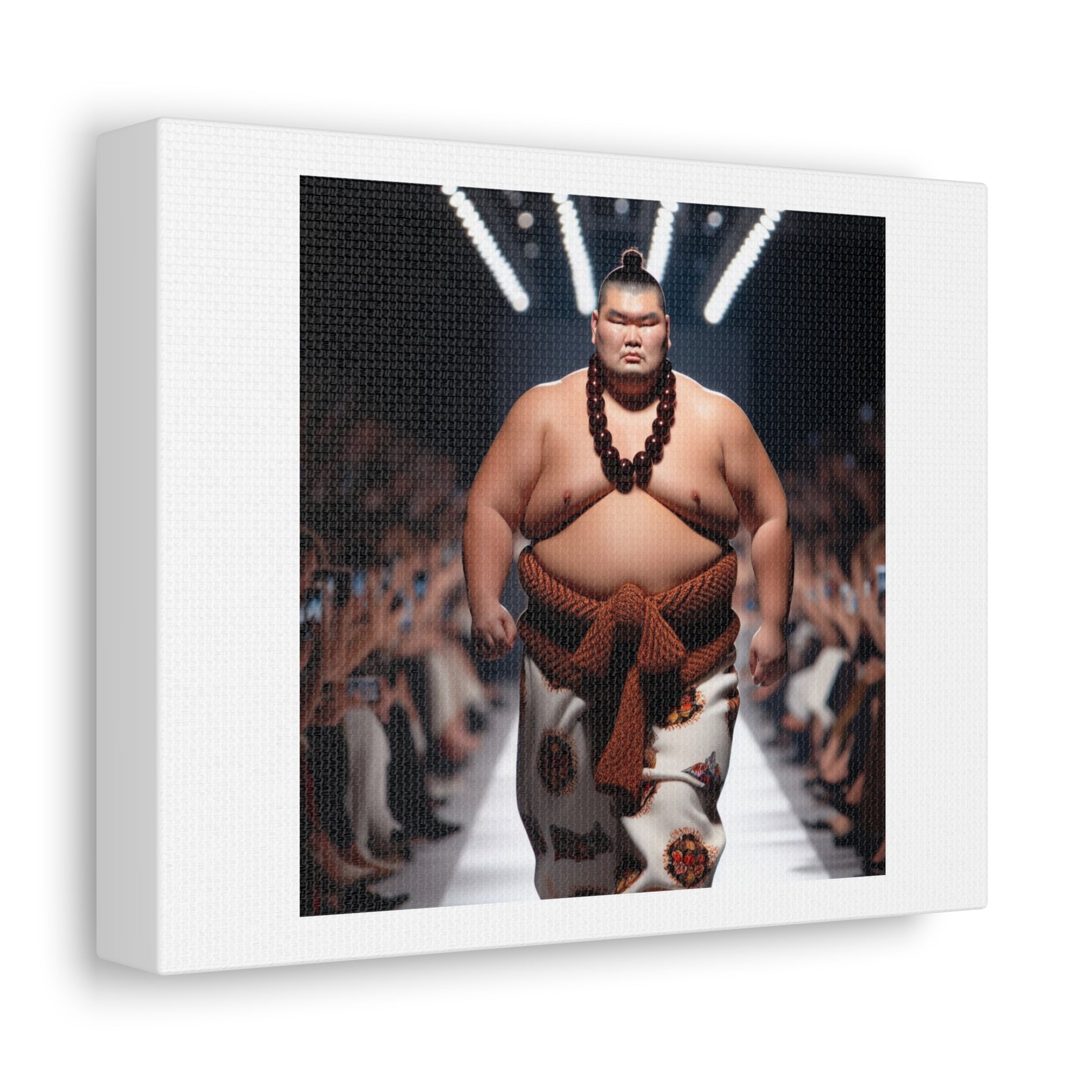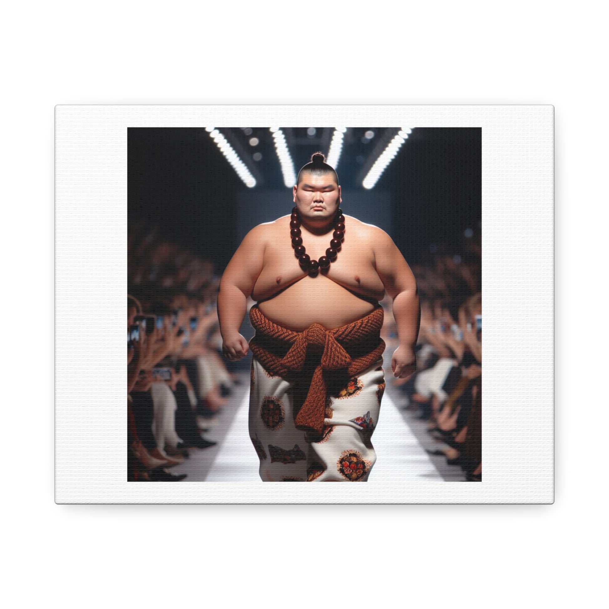 Japanese Sumo Wrestler on the Fashion Catwalk II 'Designed by AI' Art Print on Satin Canvas