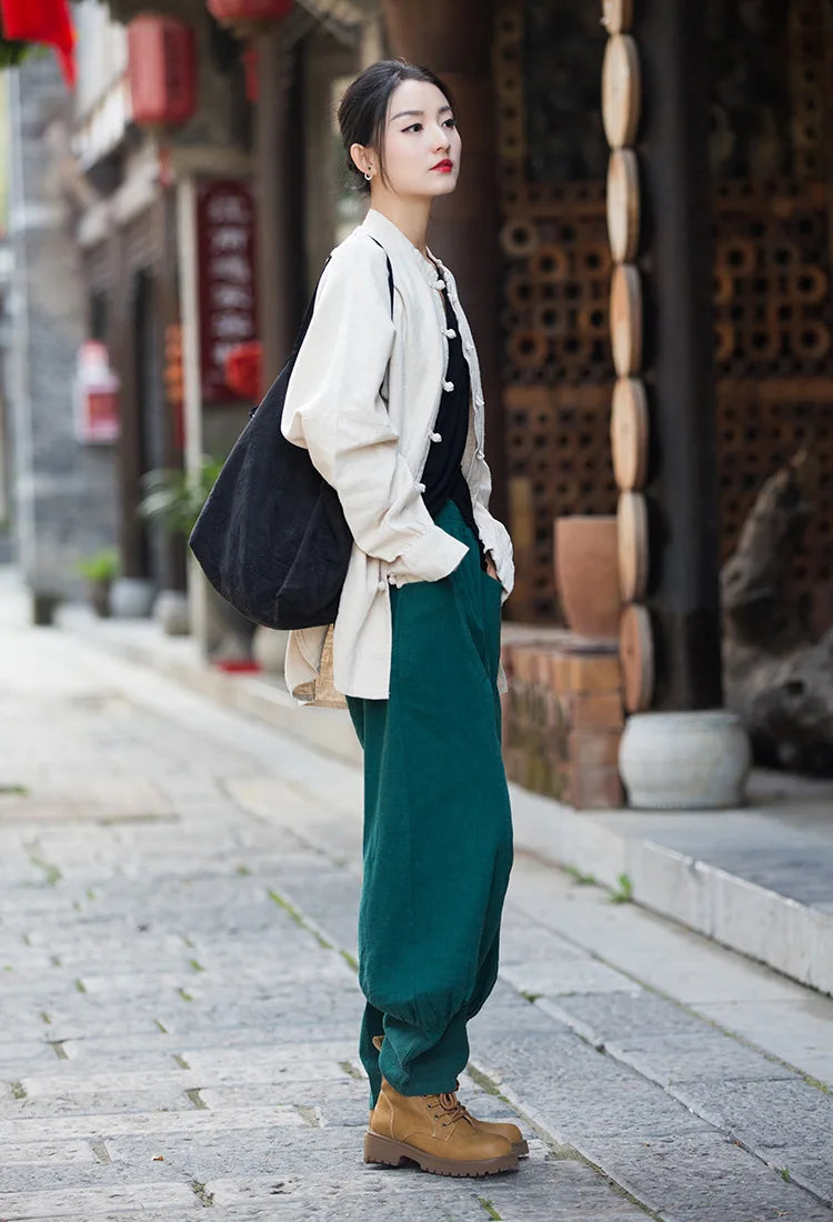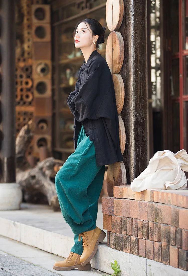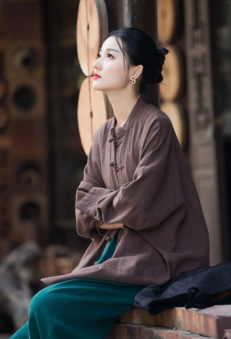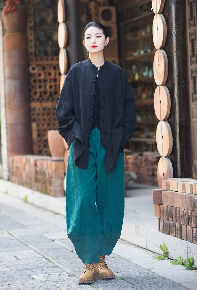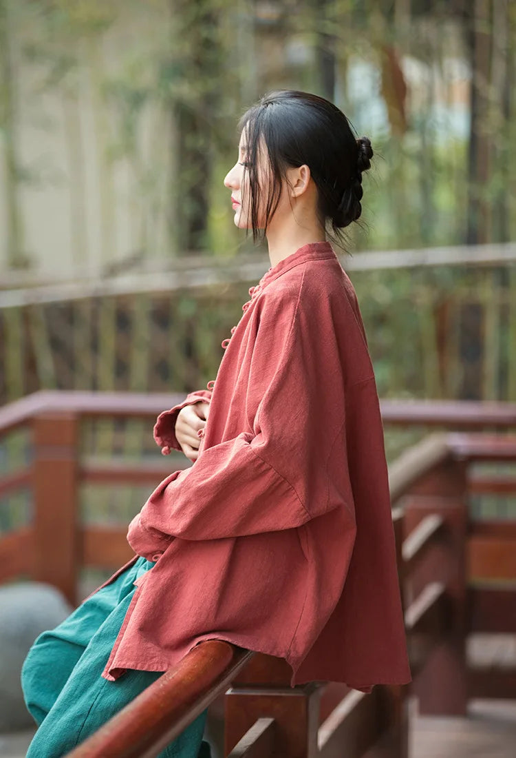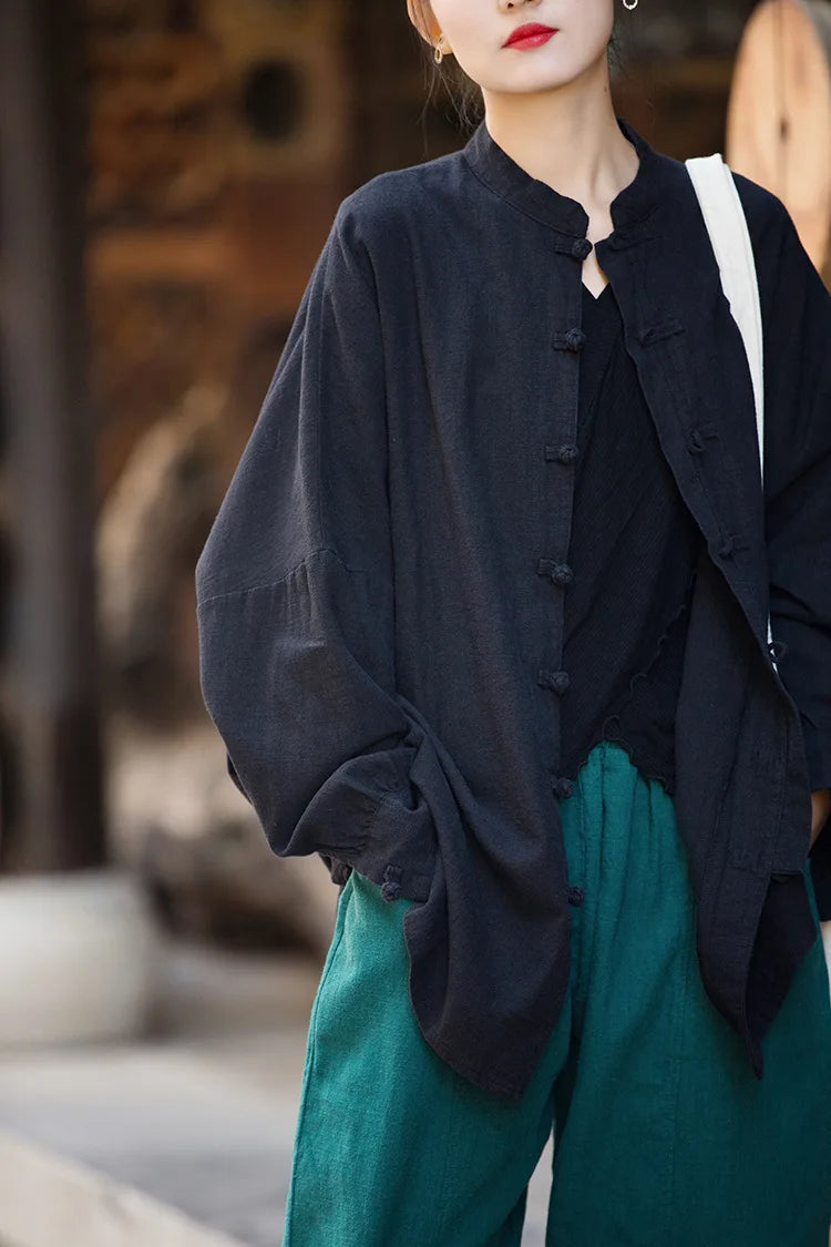 Fashion Cotton Linen Women's Stand Collar Jacket, Multi Colours