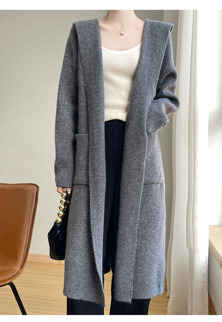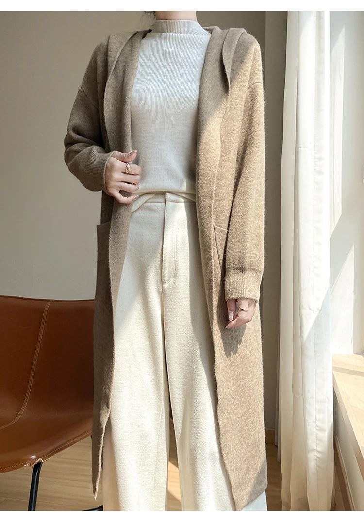 Vireous Lazy-Style Thickened Wool Knit Long Cardigan Coat