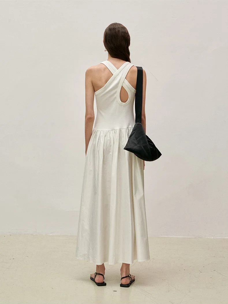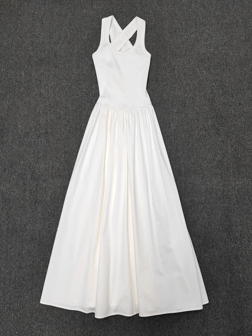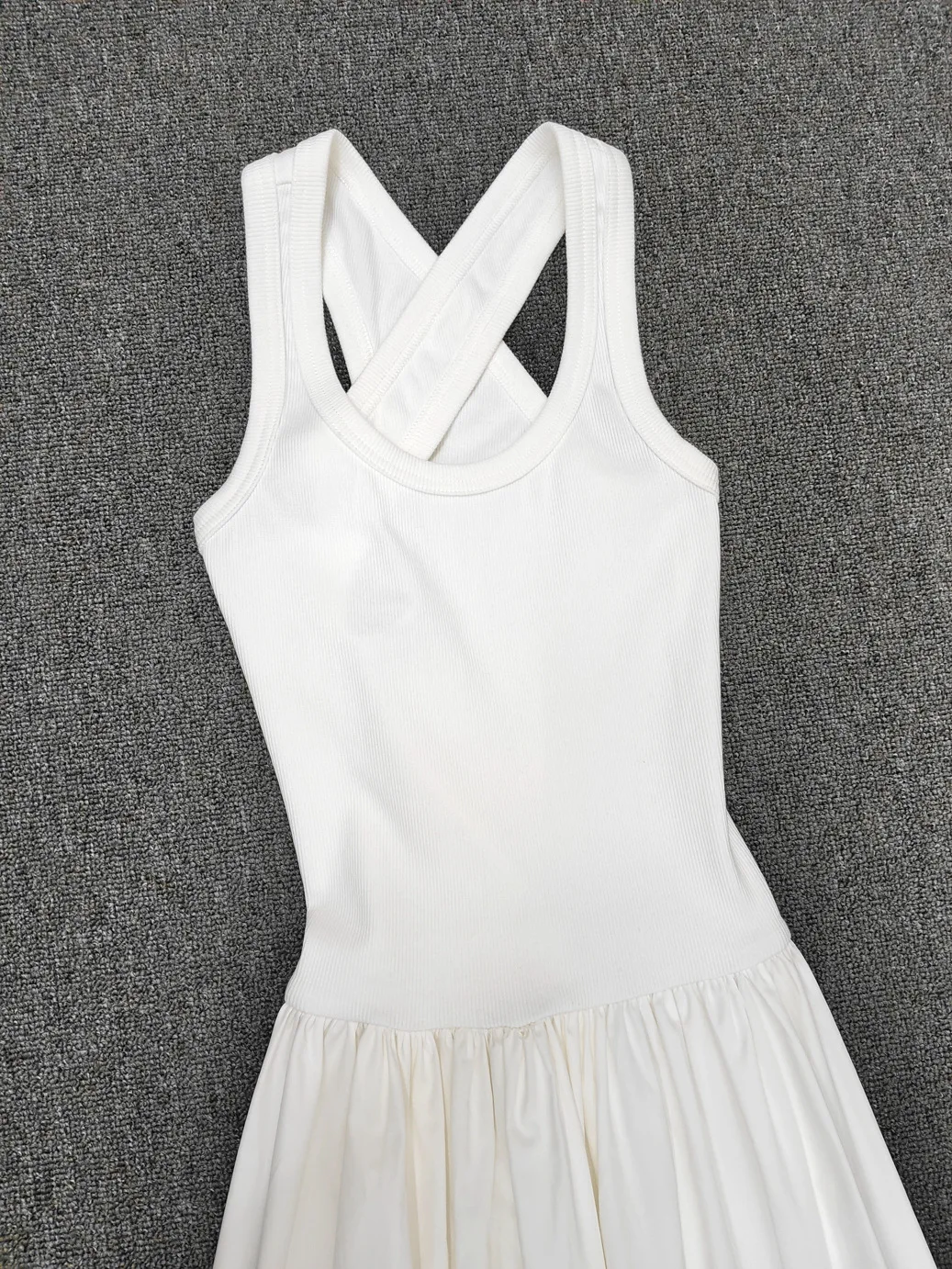 Here is our patchwork slim dress, the ultimately beautiful and simple, sleeveless dress, cross-tied at the back, with o-neck, vest dress with straps.