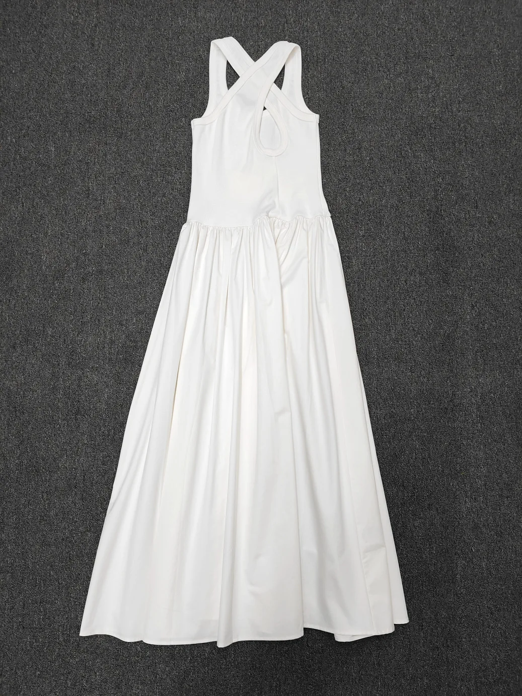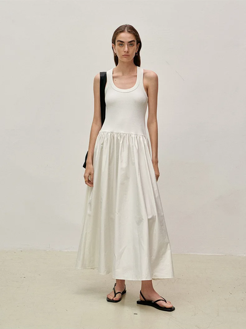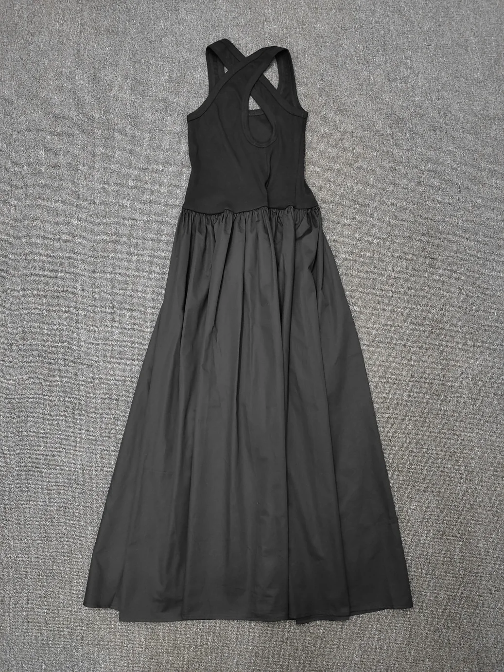 Here is our patchwork slim dress, the ultimately beautiful and simple, sleeveless dress, cross-tied at the back, with o-neck, vest dress with straps.