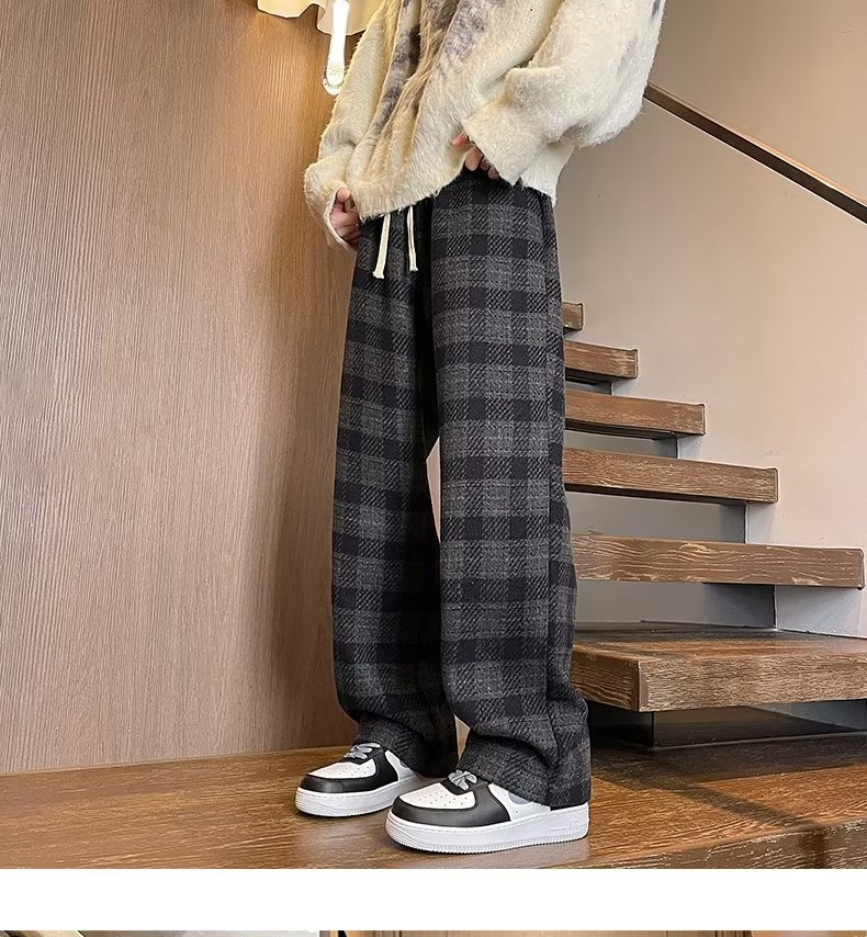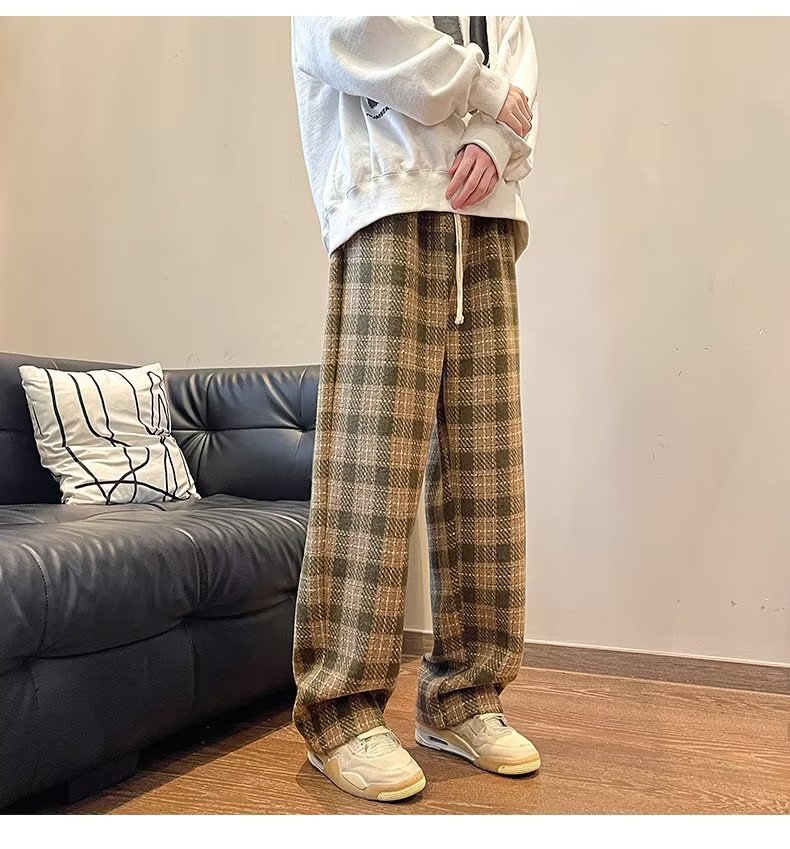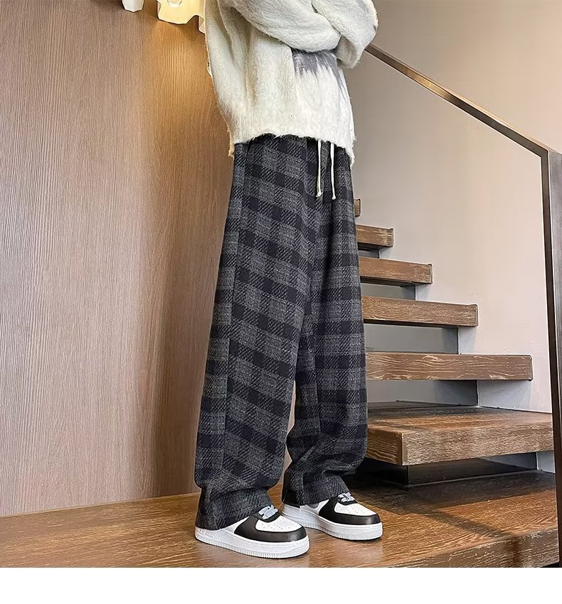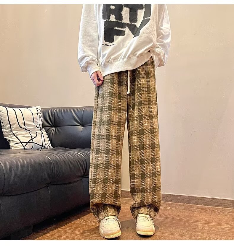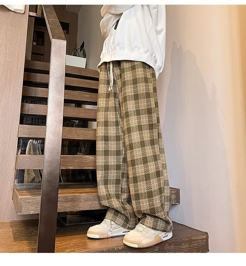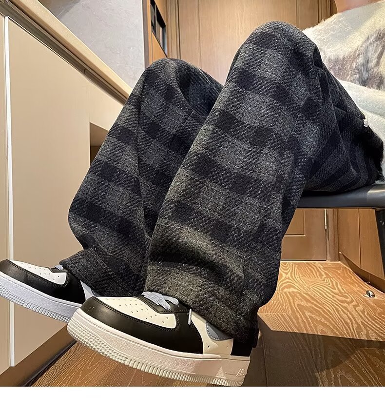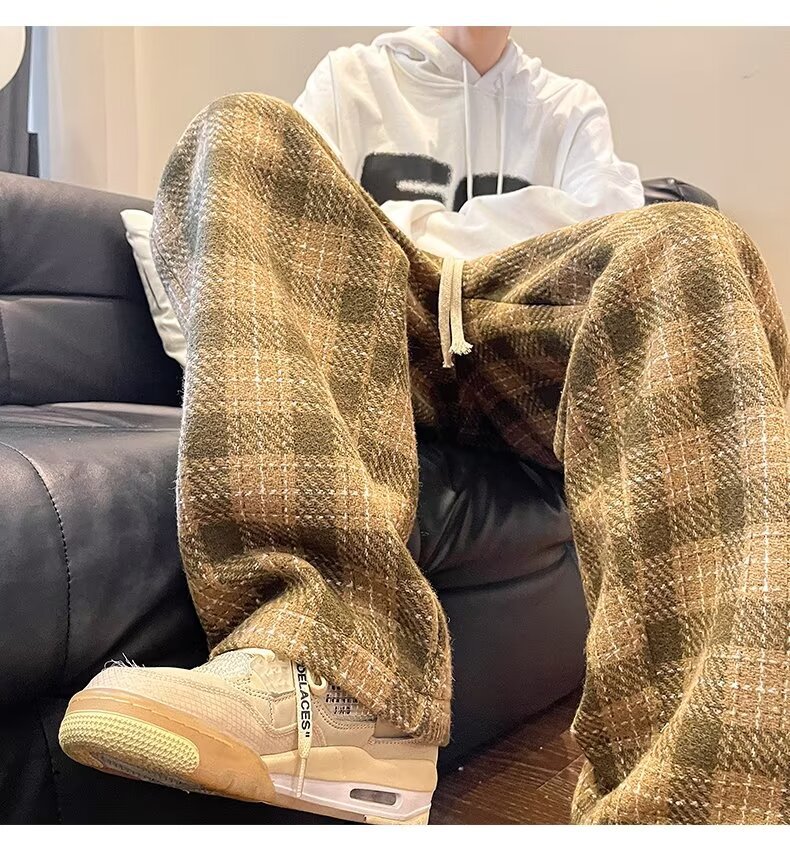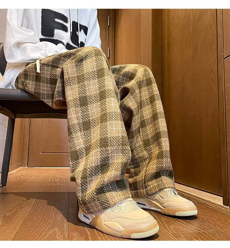 Vireous Bright Plaid Straight-Leg Drapey Casual Men's Trousers