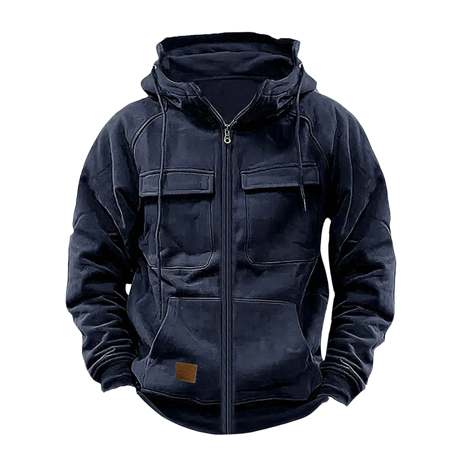 Men's Thickened Solid Hoodie, Mullti Pockets