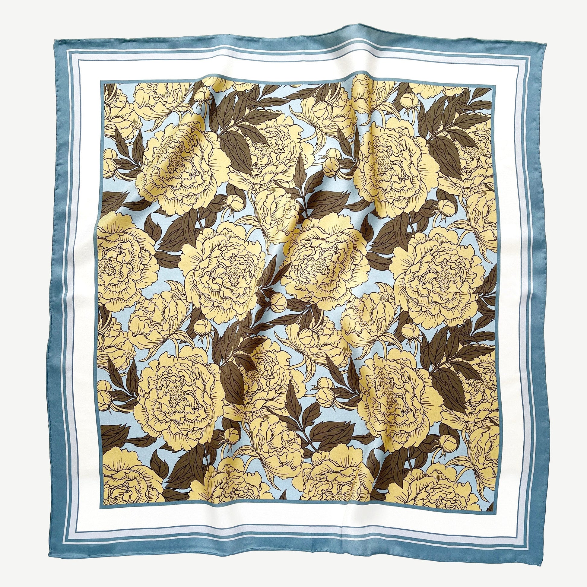 Peony Bloom Silk Scarf, 65cm Hand-Rolled Bandana Scarf