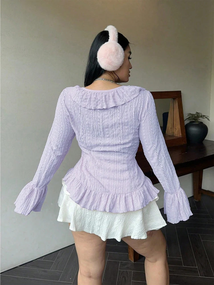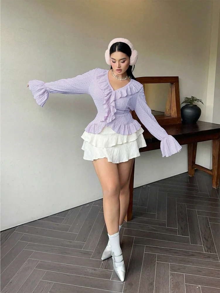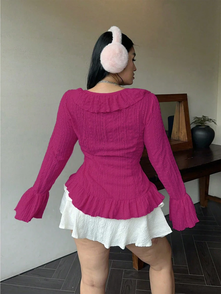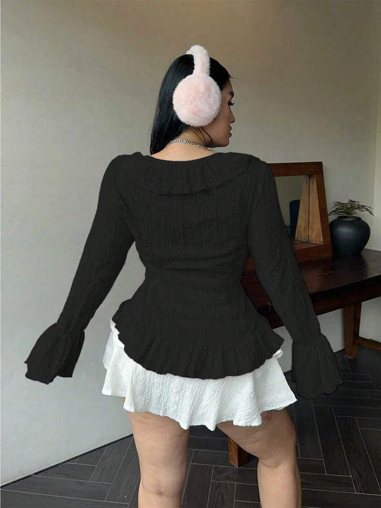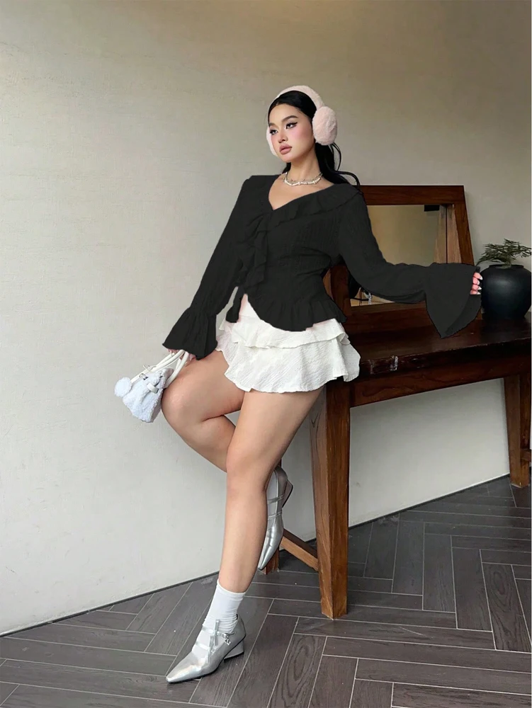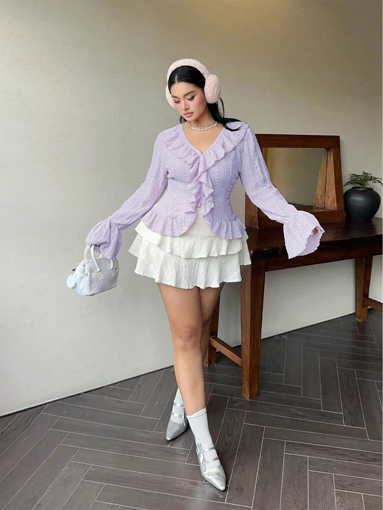 Vireous Elegant French Ruffle Flared-Sleeve Blouse, Plus Sizes