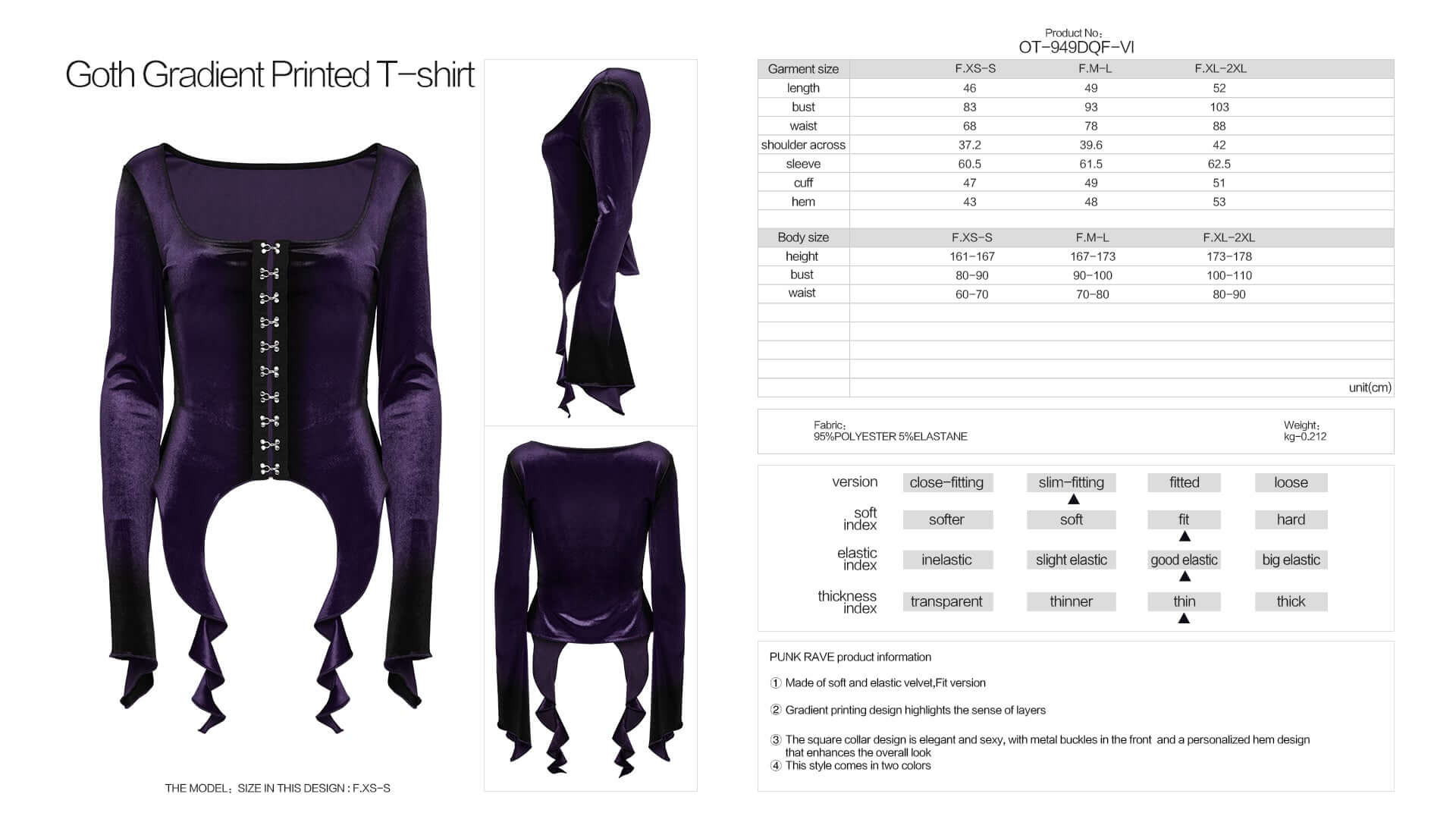 Embrace your edgy side with the Punk Rave Bronwyn Gradient Printed T-shirt! Made of soft and elastic velvet, this fit version showcases a unique gradient printing design that adds dimension to your look.