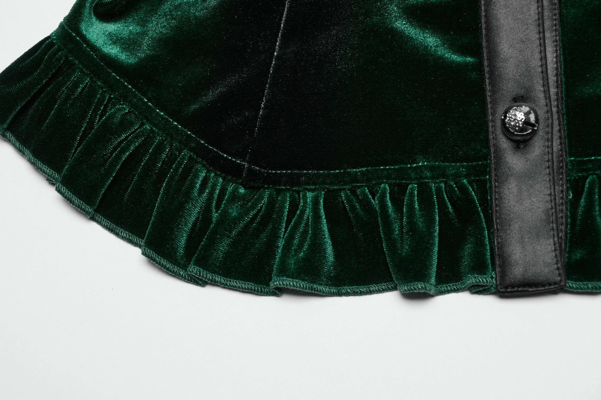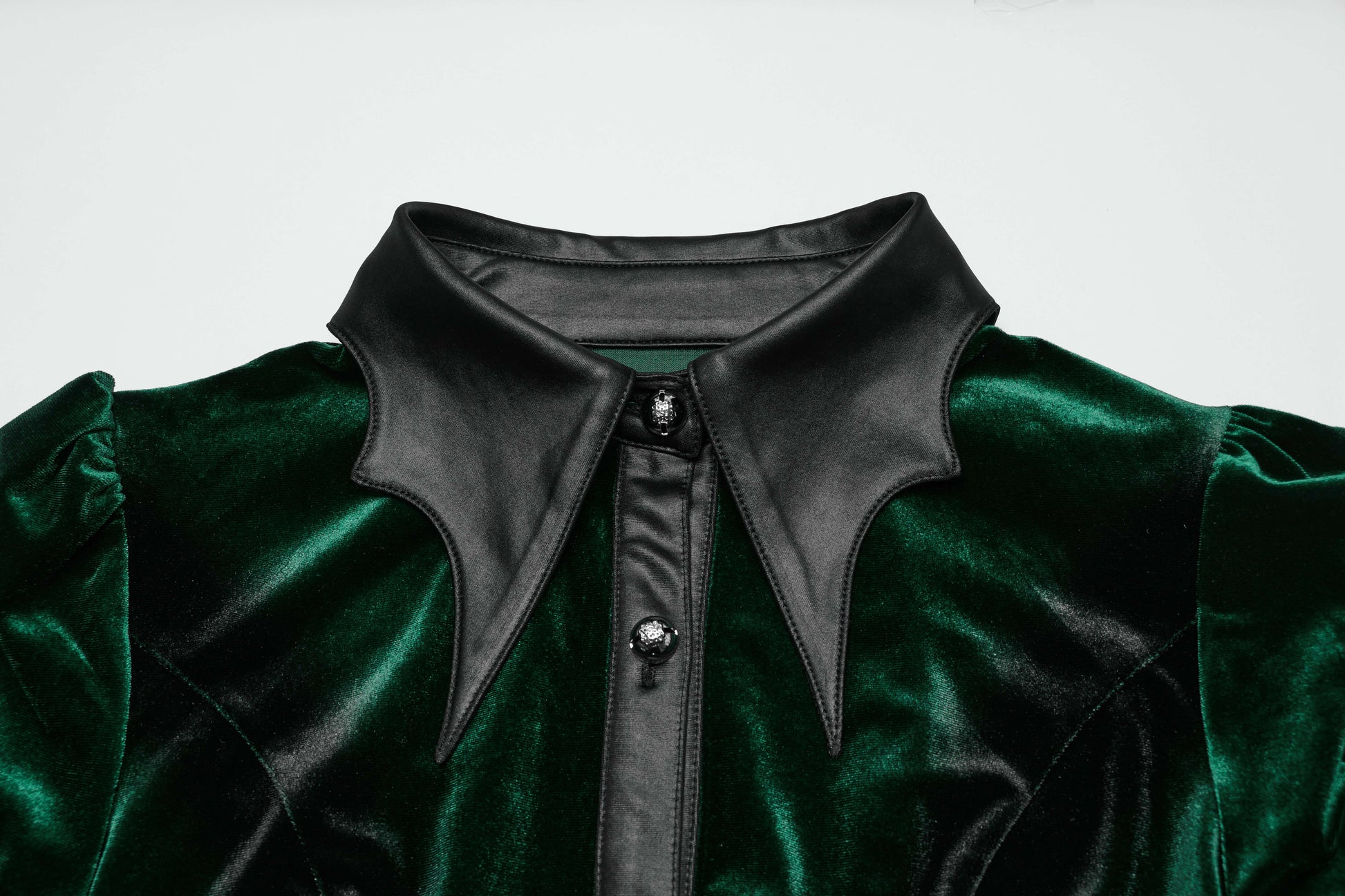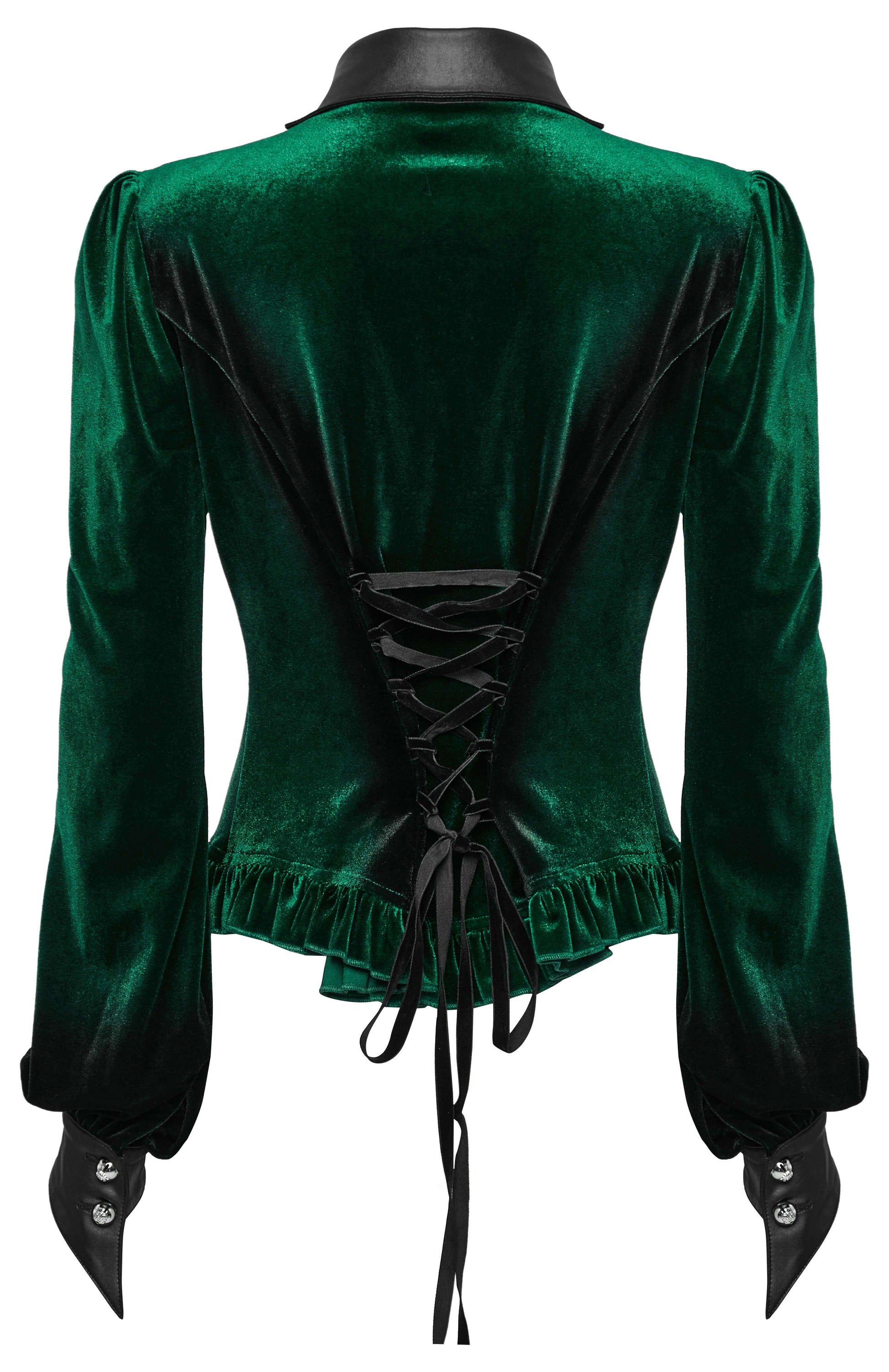 This Punk Rave Fawn Gradient Printed Shirt in Green is made of soft and elastic velvet, providing ultimate comfort. The gradient design highlights feminine lines while the bat collar and cuffs add a touch of design. The exquisite carved floral patterns and ruffled edges add texture and details. Plus, the adjustable waist allows for a customizable fit.
