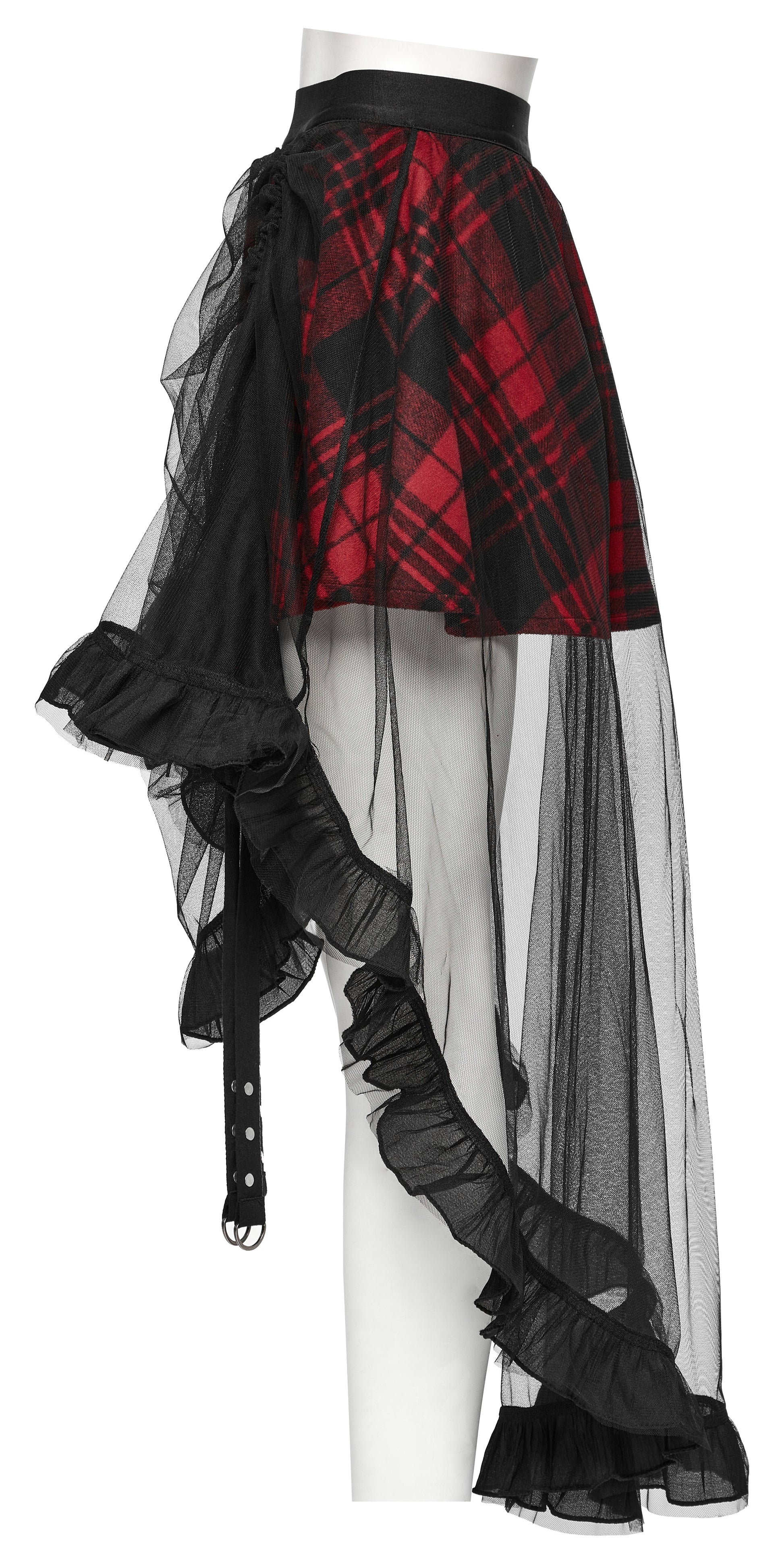 Punk Rave Morrigan Mesh Plaid High-Low Skirt
