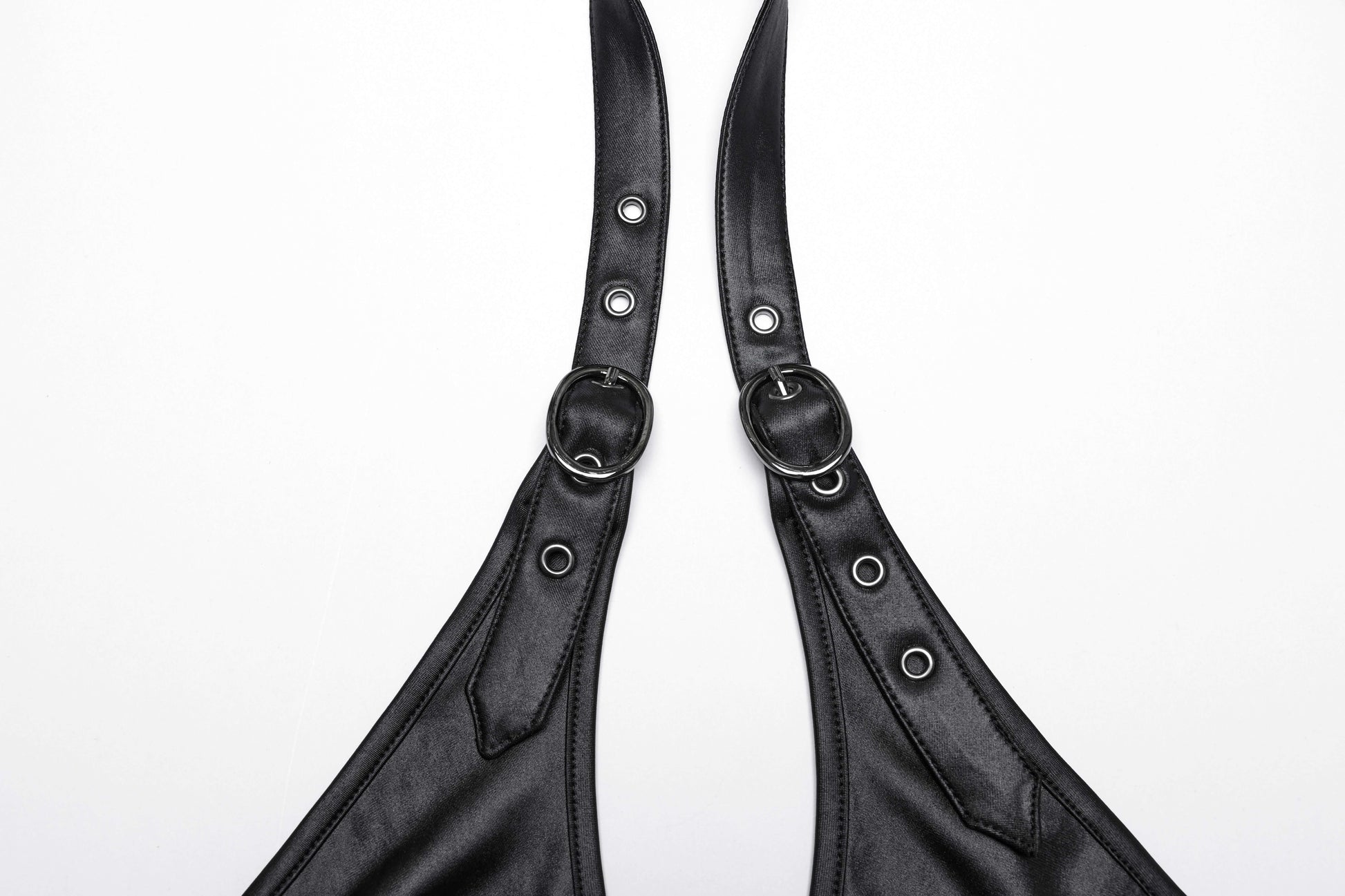 Dance between rebellion and elegance in the Punk Rave Tirza dress! Crafted from stretchy rubberized knit fabric with playful chiffon and mesh accents. The eye-popping hollow chest design guarantees you'll be the centre of attention, while two halter styling options let you switch up your look on a whim.