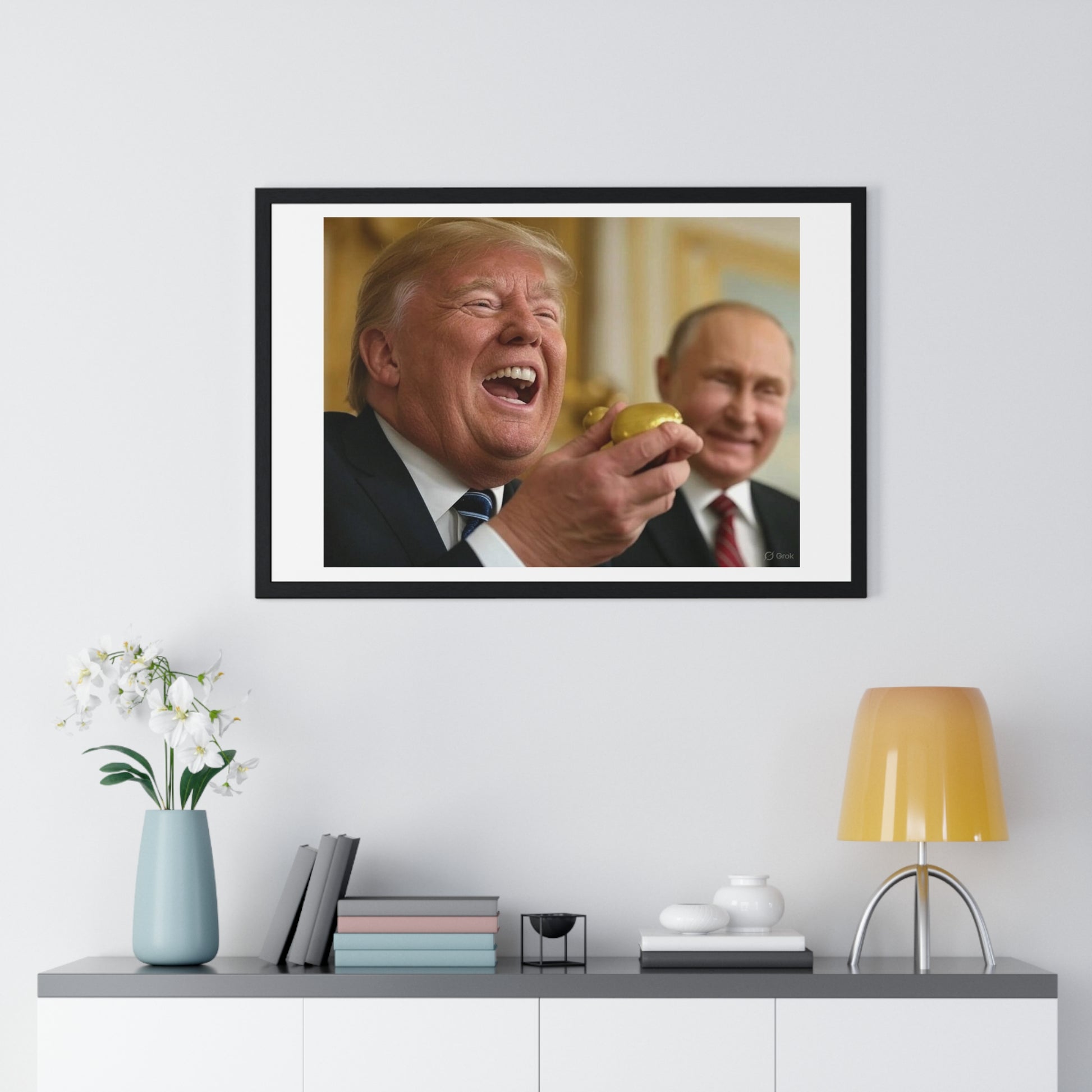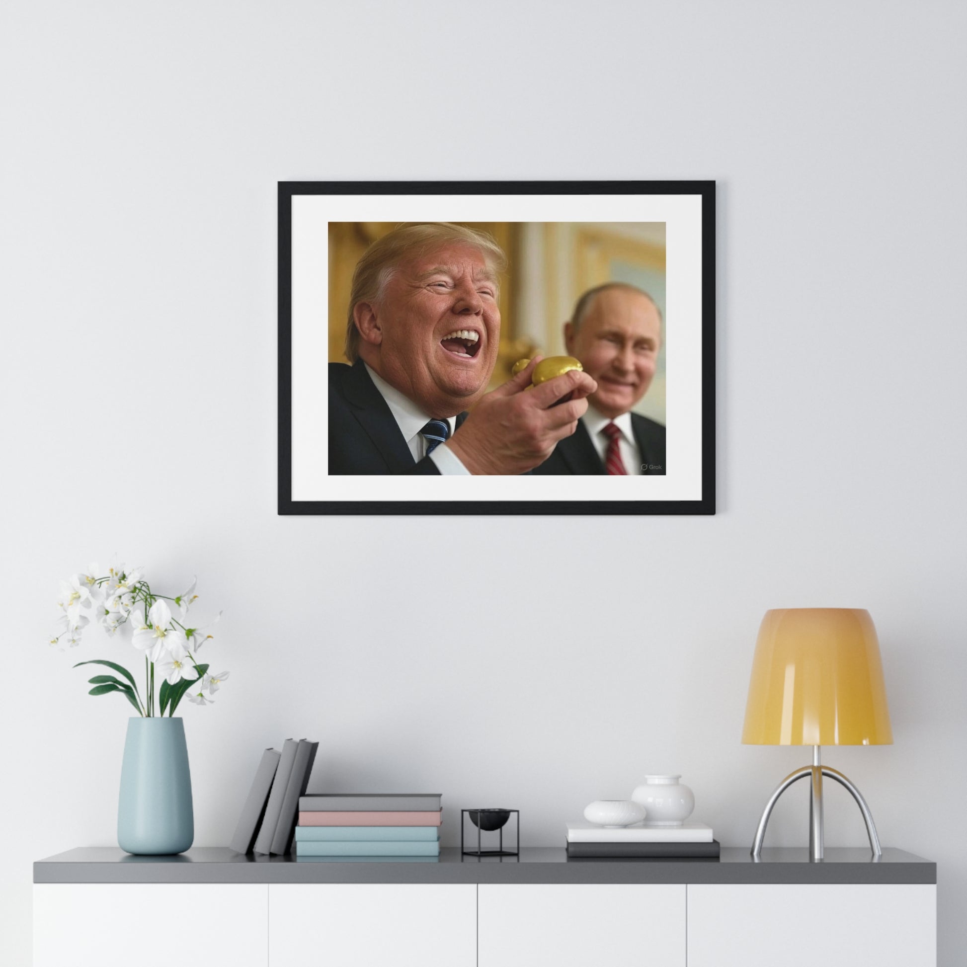 Putin, Trump and the Legend of the Golden Egg II, Abstract Art 'Designed by AI' Framed Print