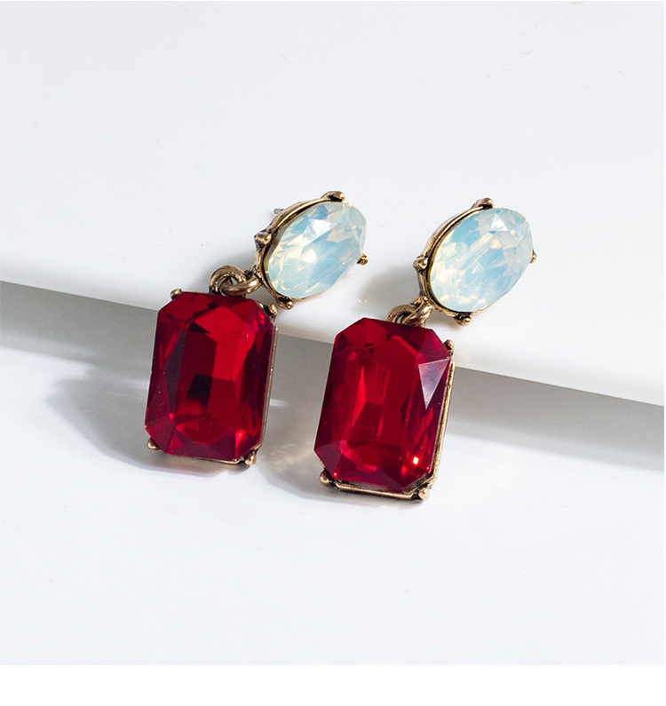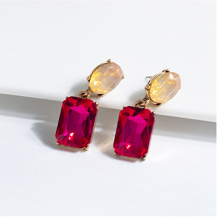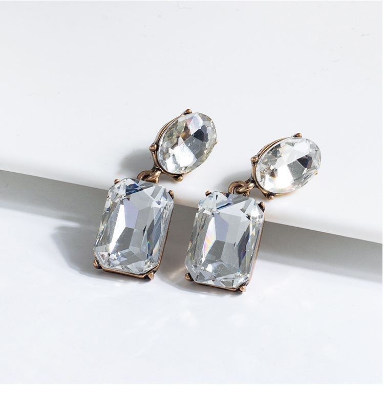Retro Simple Square Crystal Drop Earrings