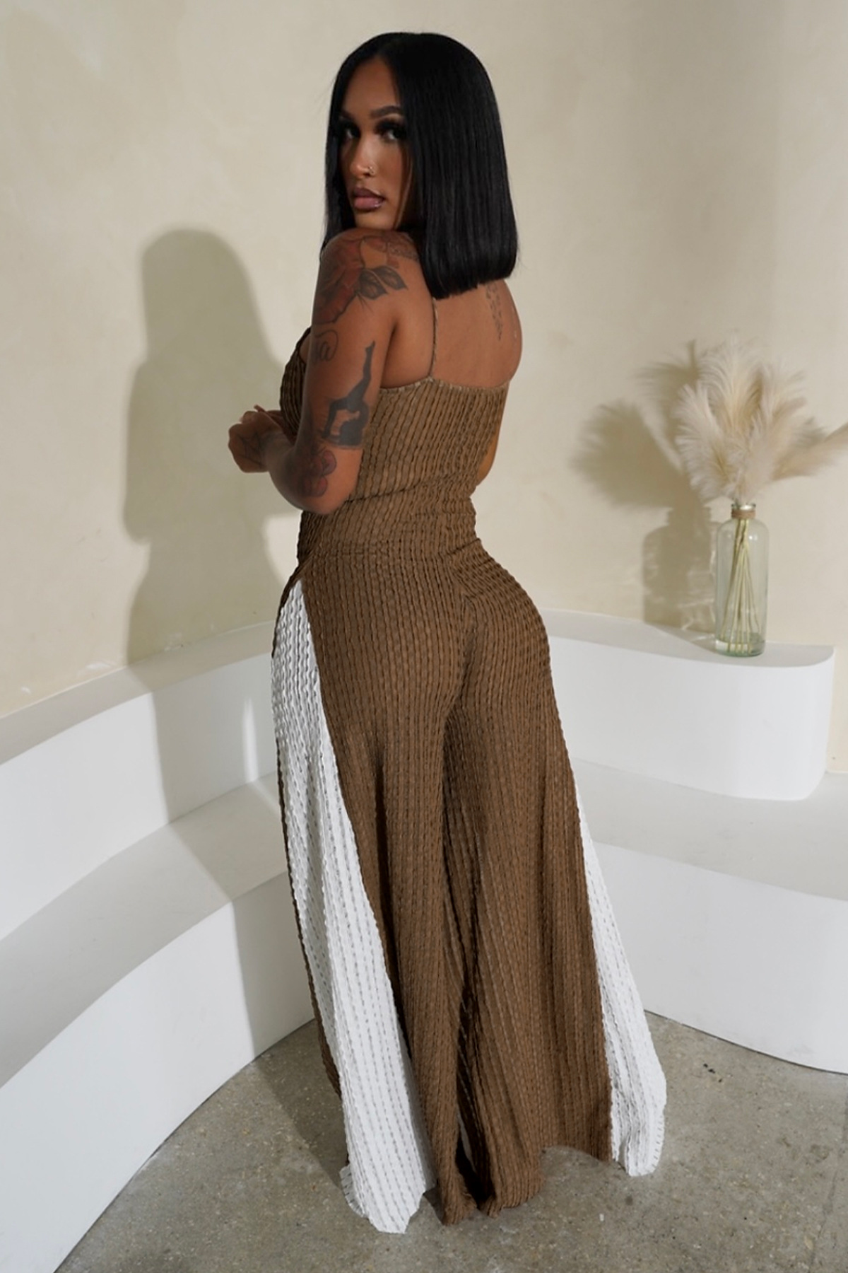 Sexy Cut-Out Wide Leg Knitted Contrast-Colour Jumpsuit