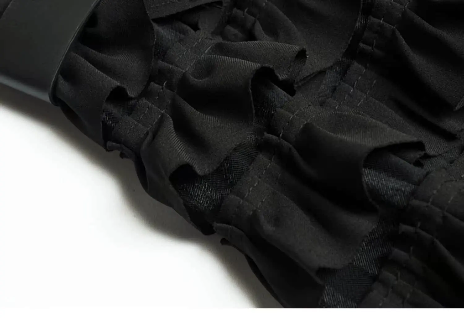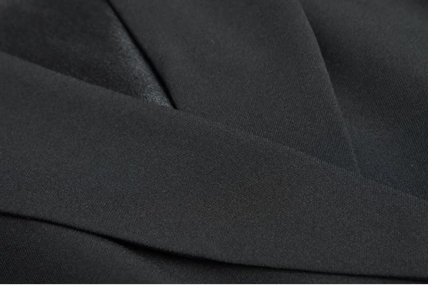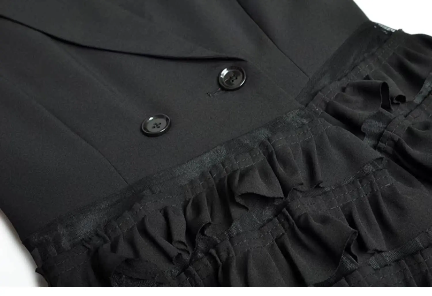 Vireous Black Suit-Collar Tiered Maxi Dress, Winter Catwalk Collection